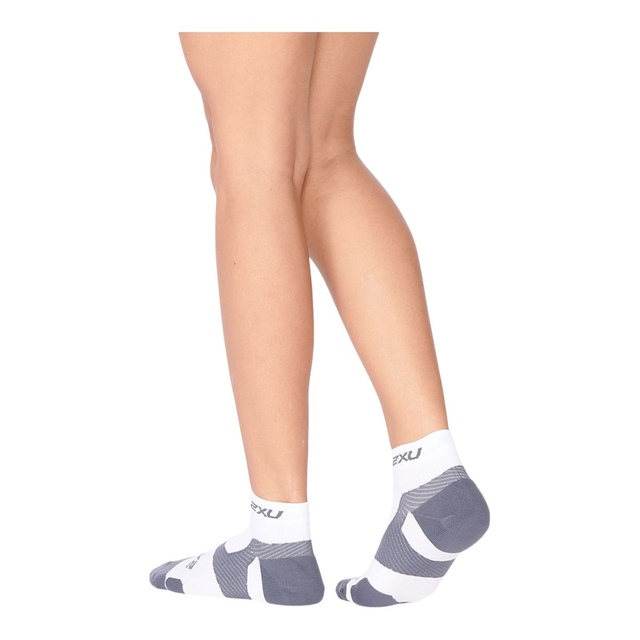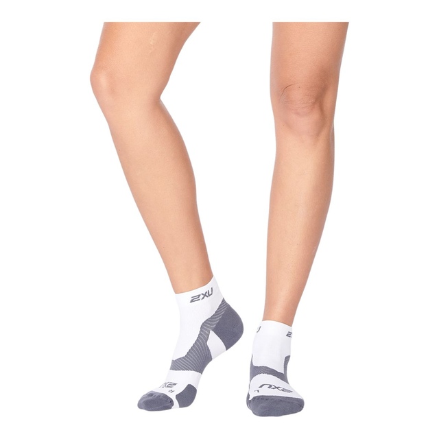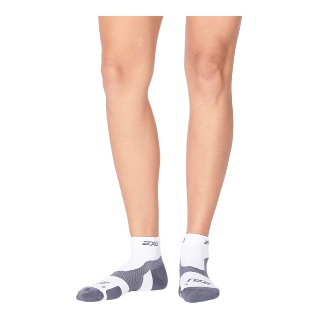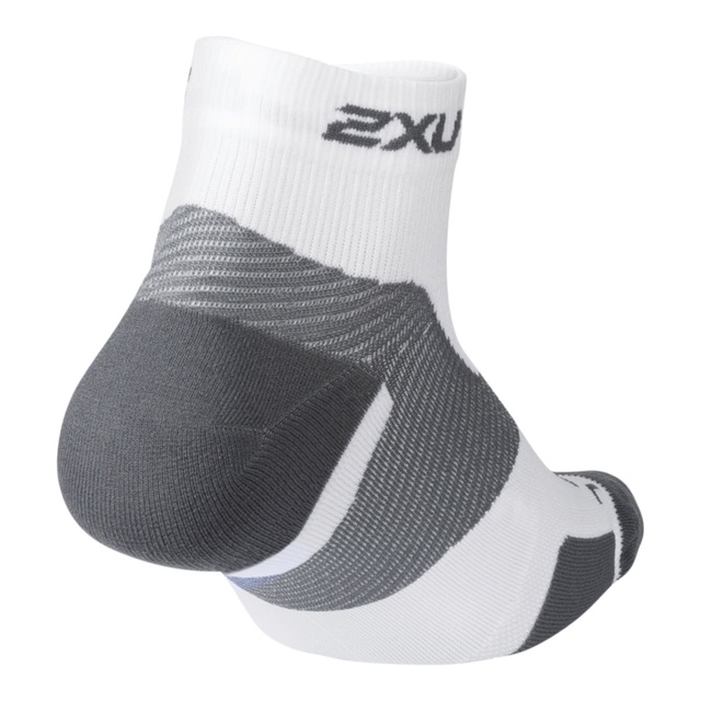The 2XU Men's Vectr Quarter Crew Socks is designed to offer comfort and support to the feet. The socks lock around the feet to reduce blistering while running, while cushioning absorbs the impact. Mesh zones increase airflow to keep feet dry. These crew socks stabilize the feet and resist abrasion.