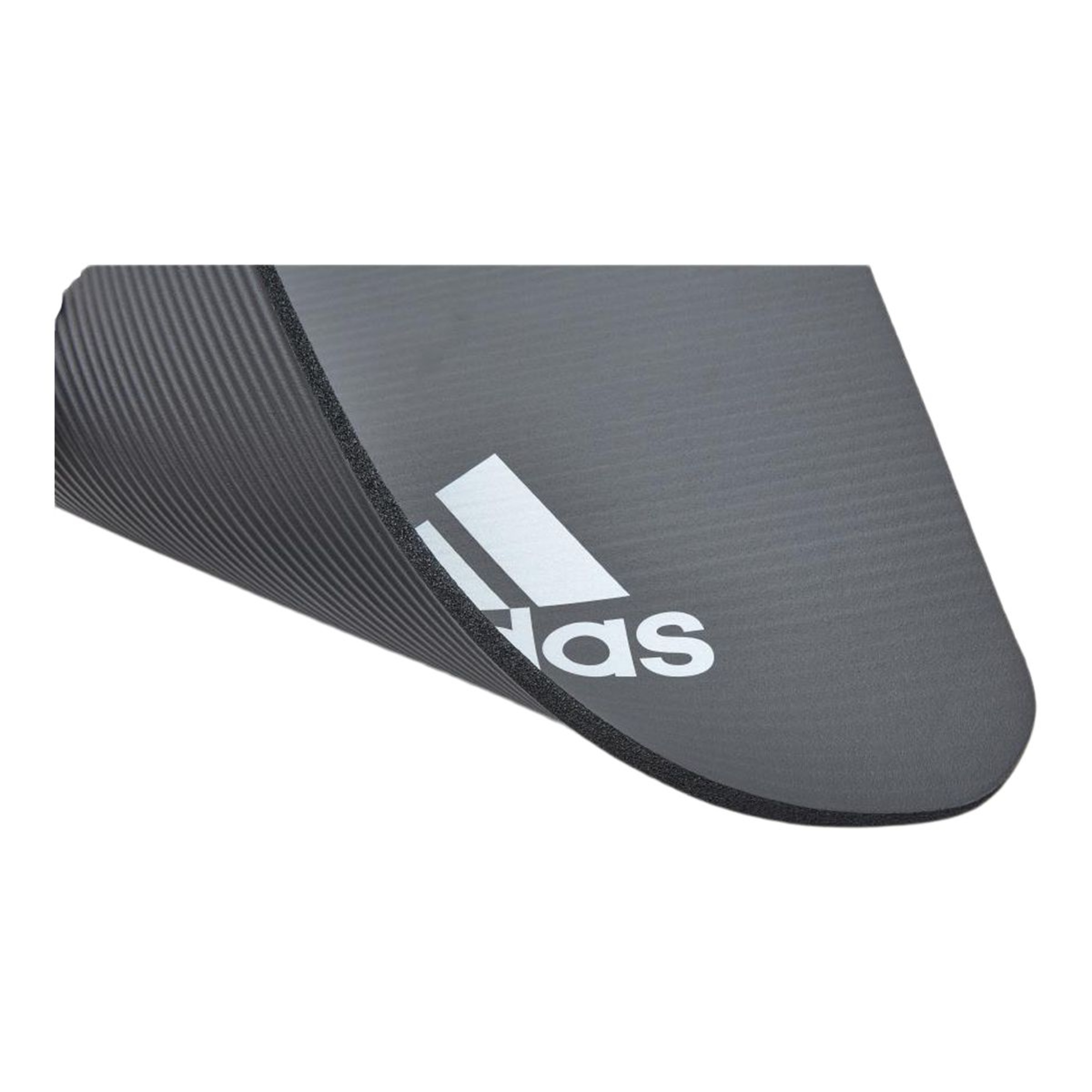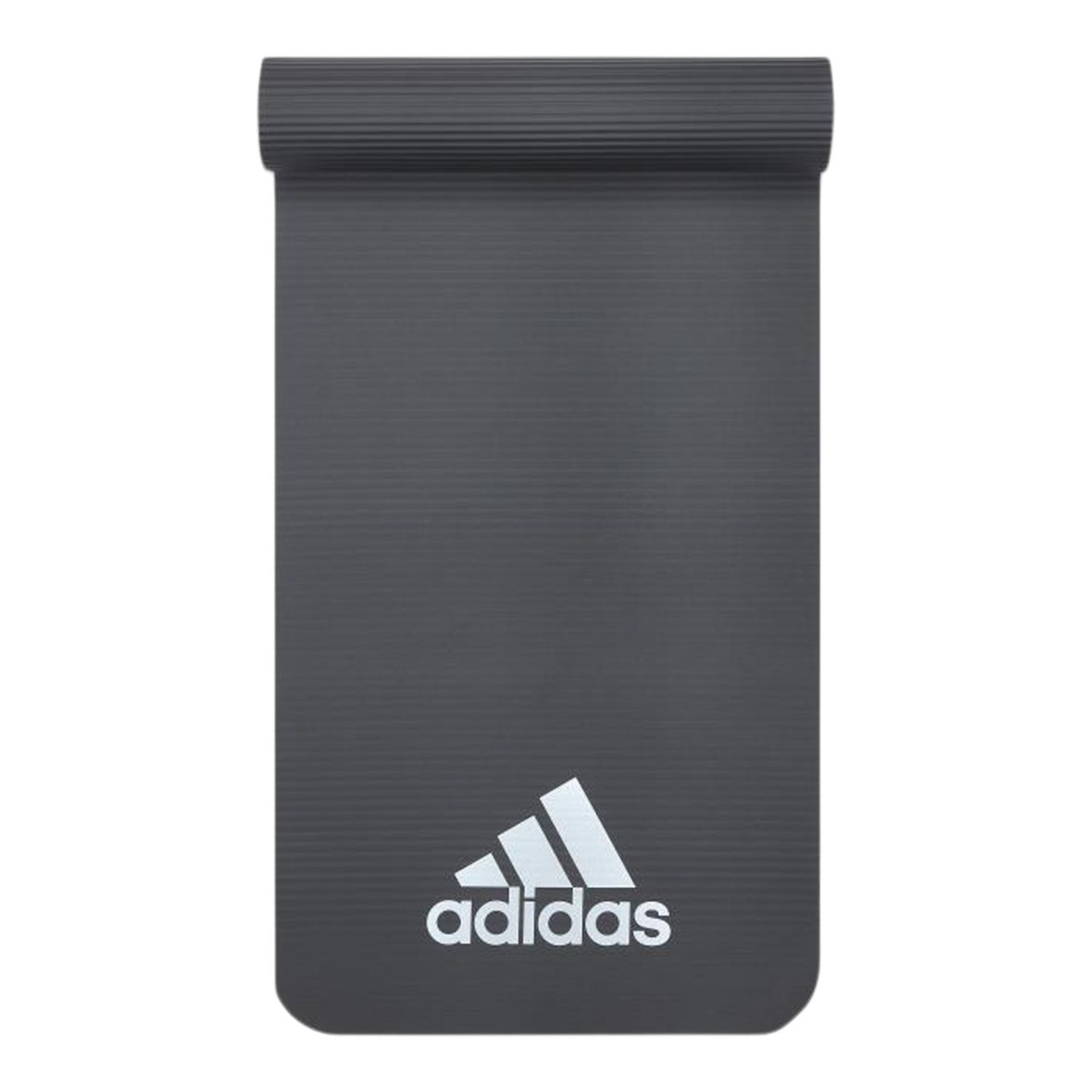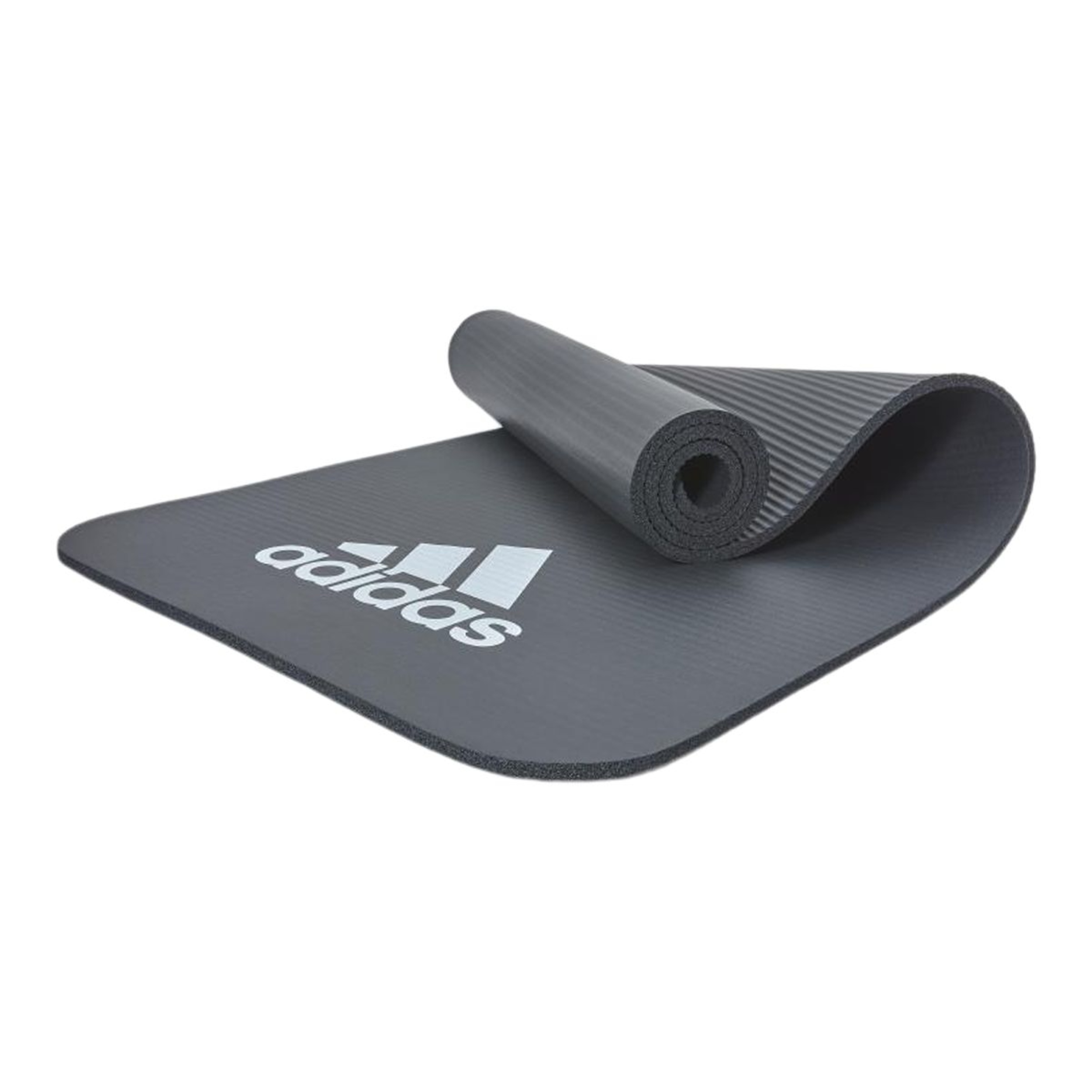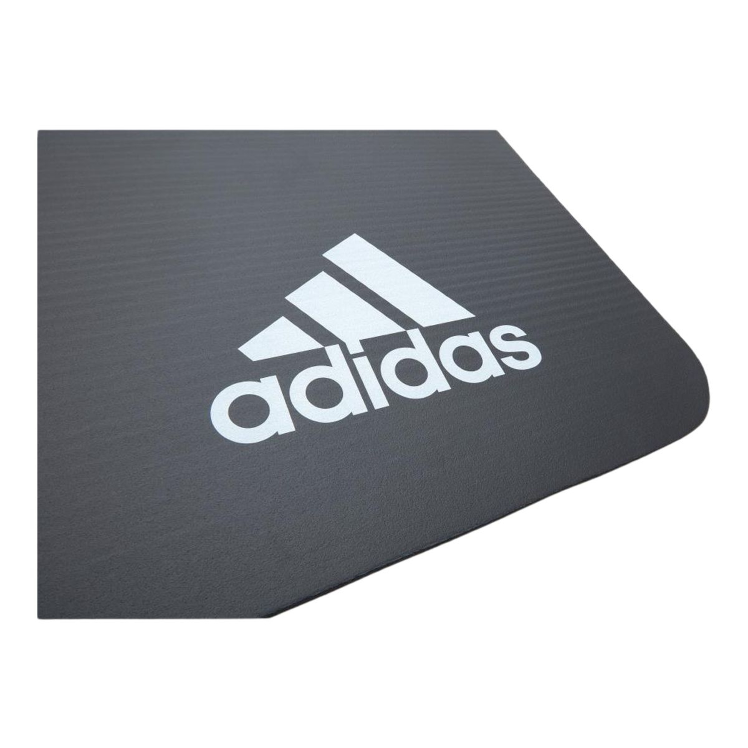good mat, at 10mm we'll cushioned fir comfortable exercise. mine came without the word ADIDAS, just the future icons logo. handy carry strap.