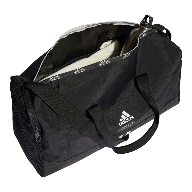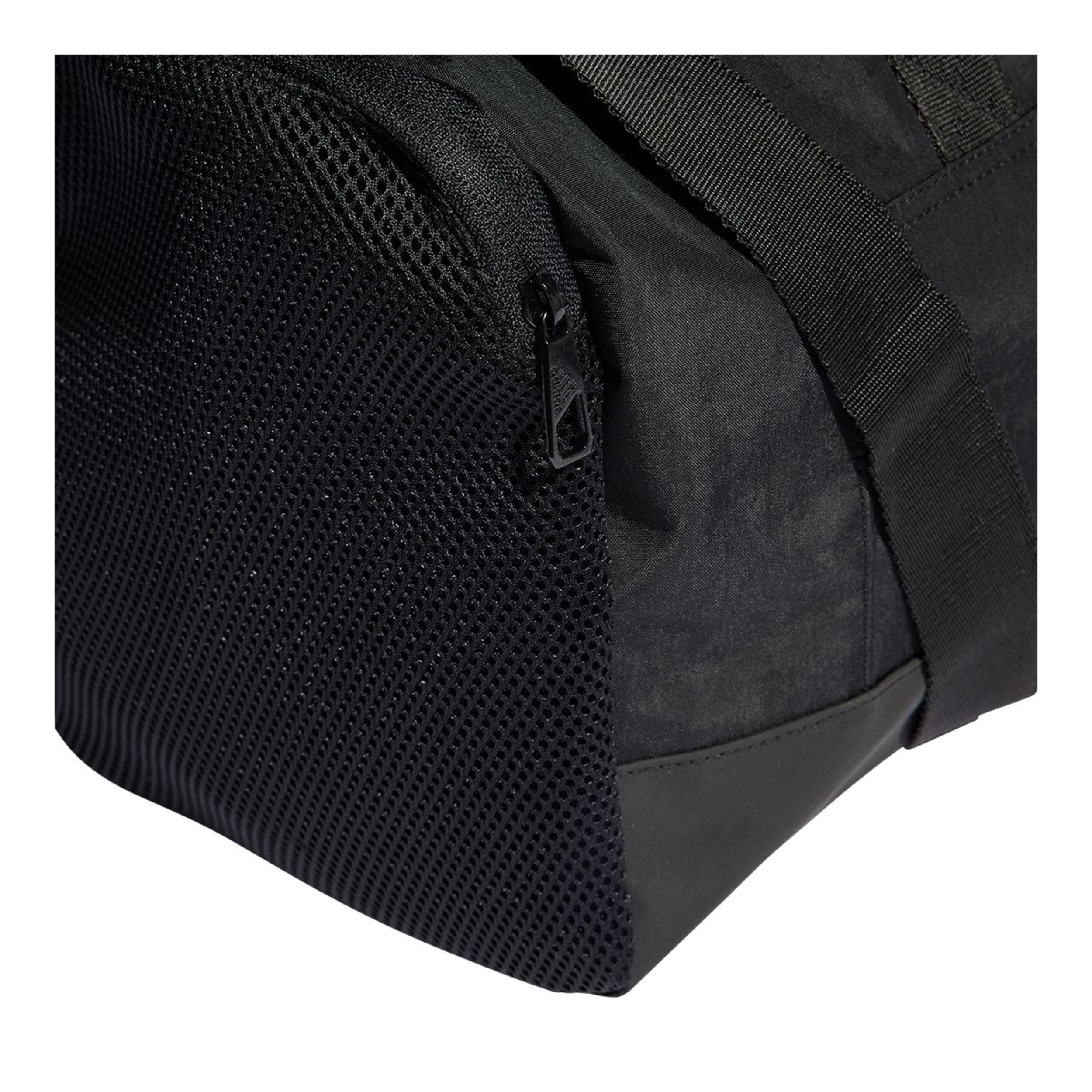 Organised storage is the key to travelling light. This adidas extra-small duffel bag has just the right amount of space for a quick trip to the gym. A mesh zip pocket keeps wet clothes or shoes separate. Made in part with recycled content generated from production waste, e.g. cutting scraps, and post-consumer household waste to avoid the larger environmental impact of producing virgin content.