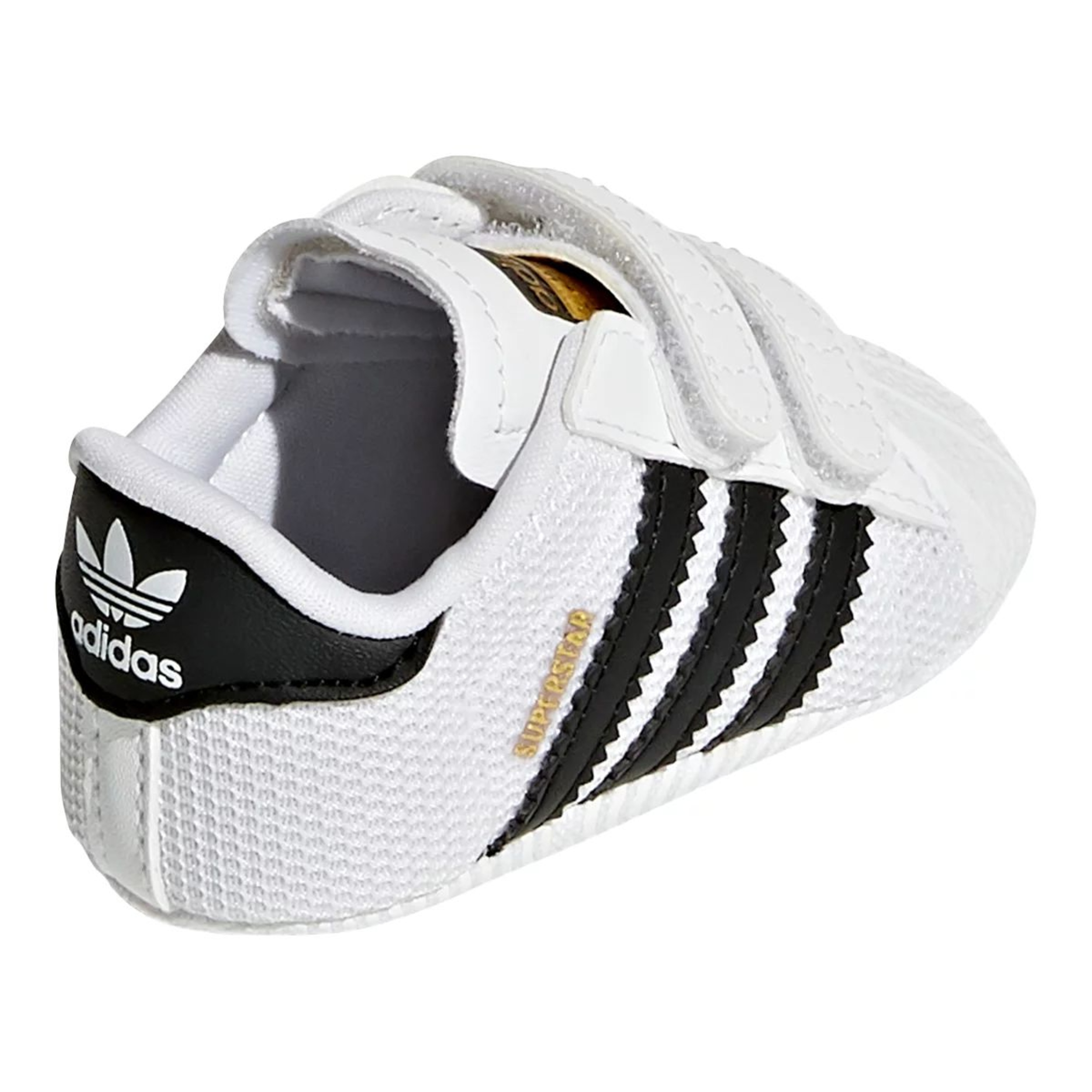 Dress your little one in style with the adidas Baby Infant OG Superstar Crib Shoes. Crafted with a soft mesh build and jersey lining, these adidas shoes prioritize breathable comfort. The anti-slip rubber toe cap and woven outsole with an anti-slip rubber print ensure a secure grip. Convenient hook-and-loop straps allow for easy on and off, while branded 3-Stripes and a synthetic leather heel patch with a logo add classic adidas style, making it a tiny replica of the iconic vintage adidas Superstar shoe.