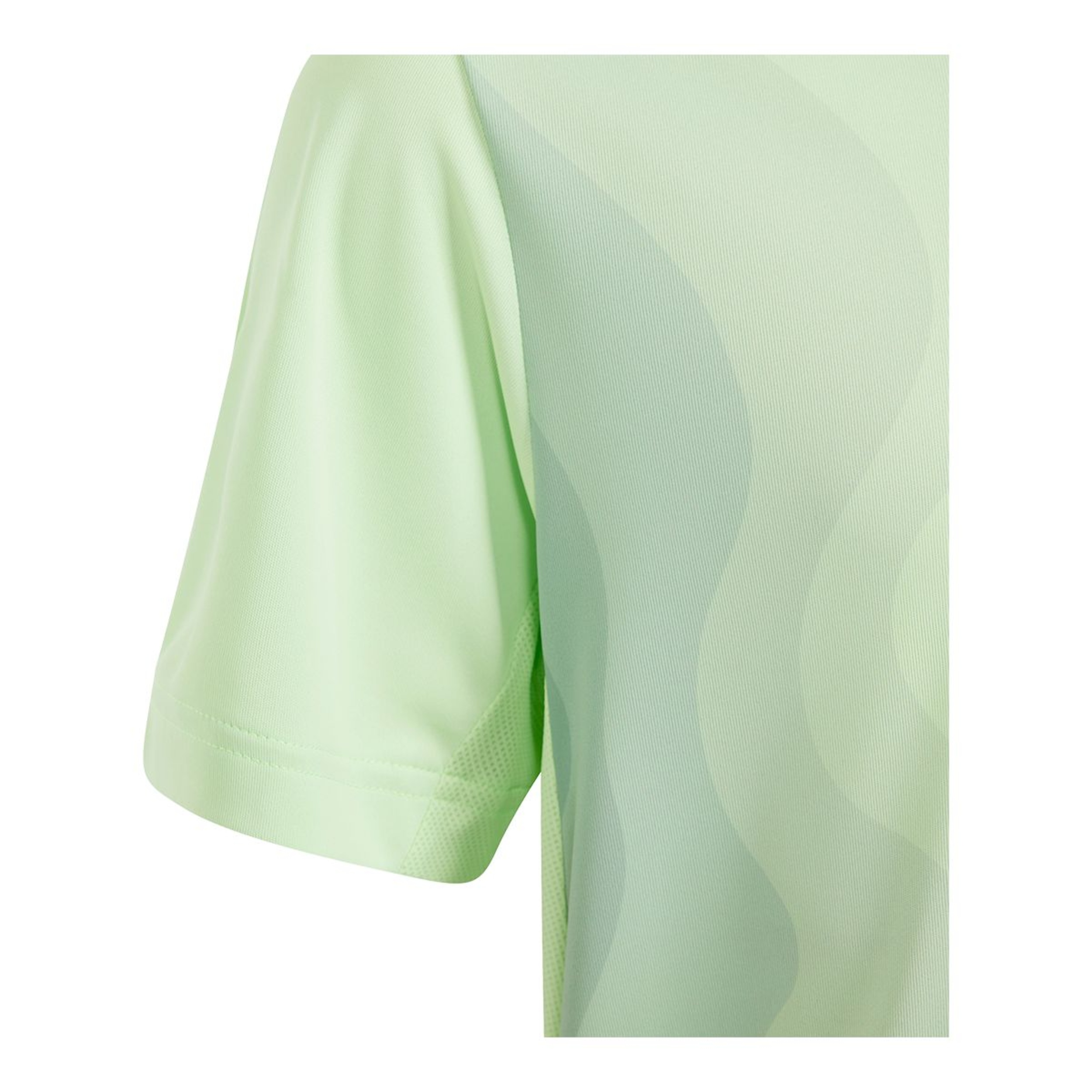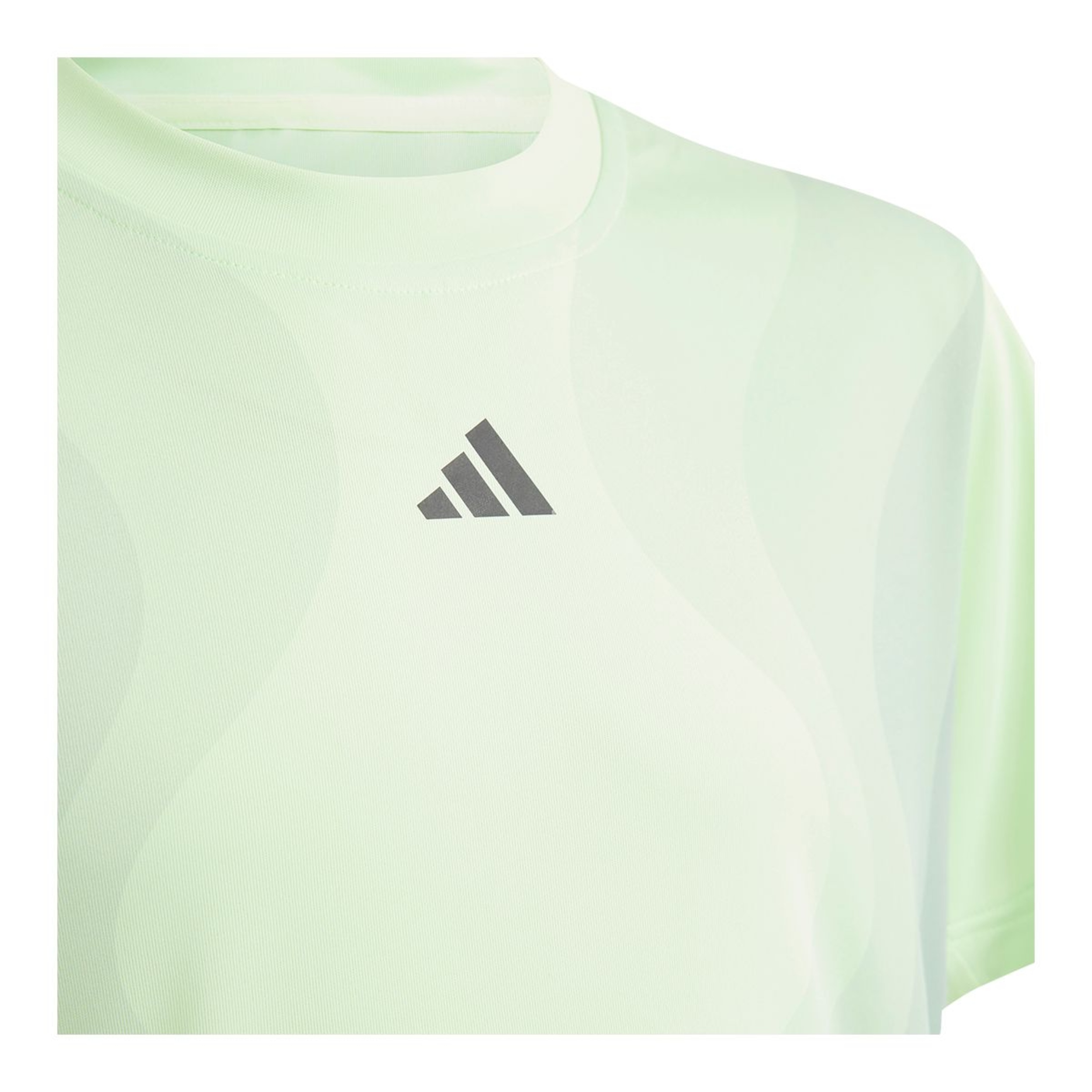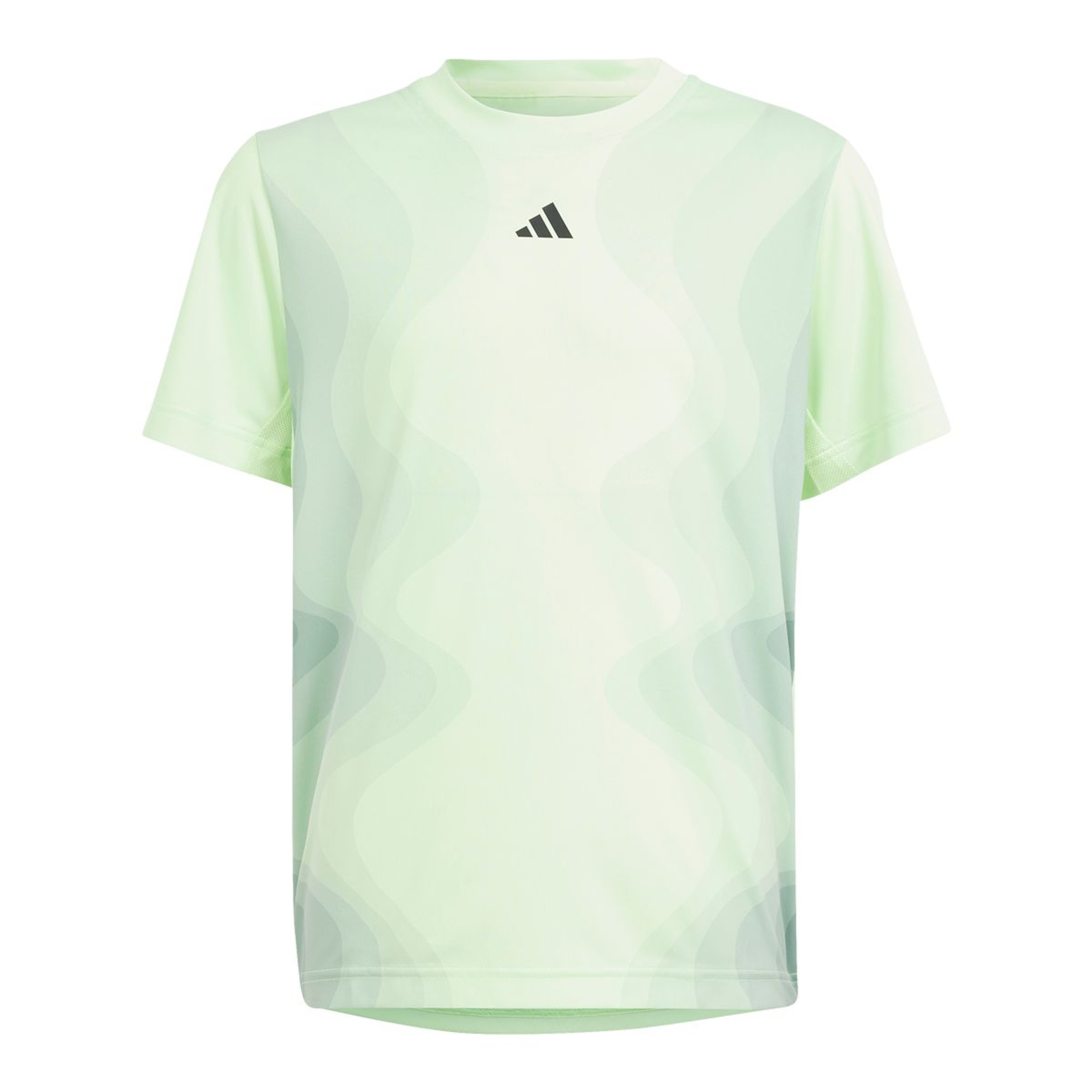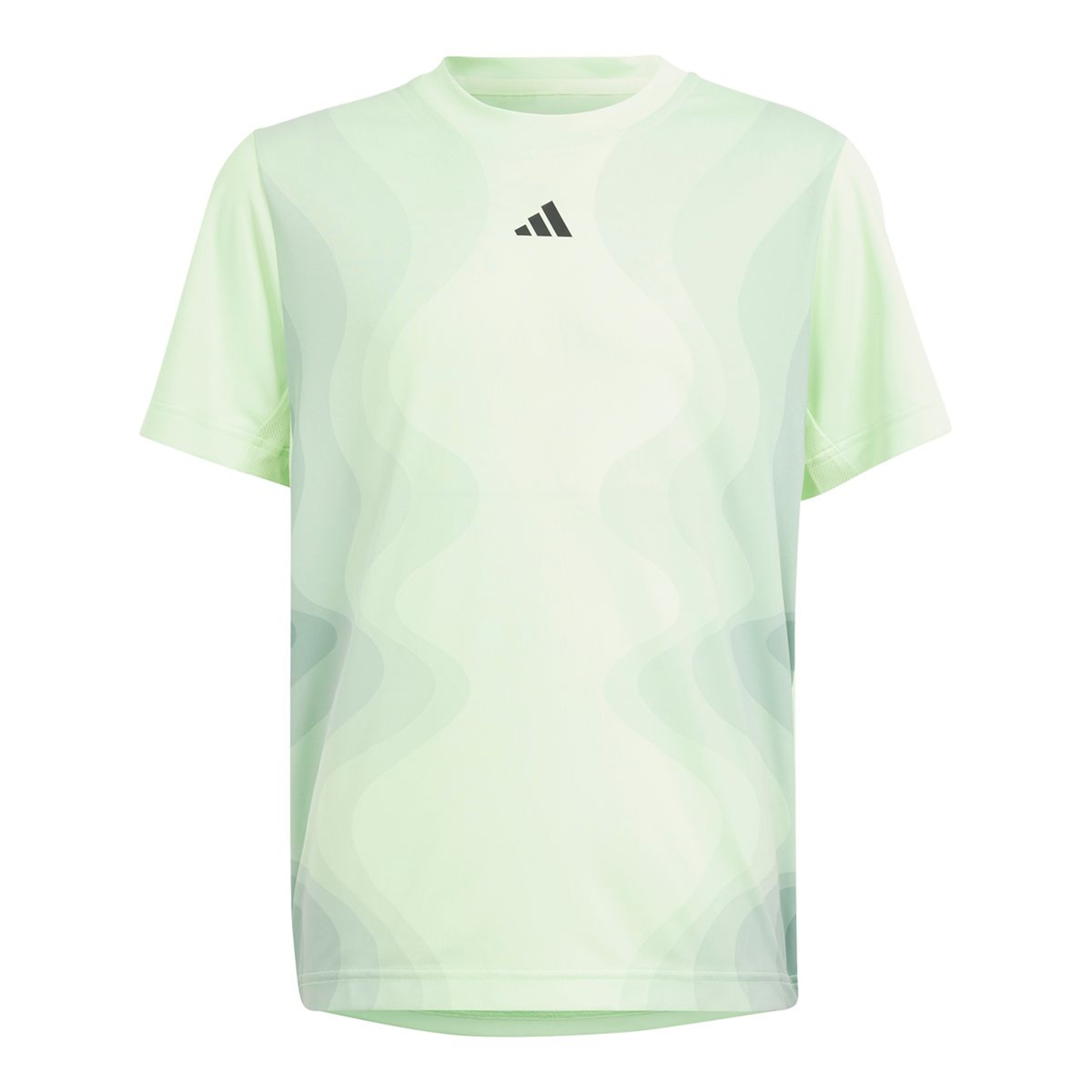 Stay calm when it's all on the line. Part of the adidas Melbourne collection, this juniors' tennis tee is made for young players who want to block out distractions. Moisture-wicking AEROREADY and a shoulder-freeing FreeLift design team up to keep you dry and your tennis flowing. Inspired by nature, that eye-catching print is all about keeping your eyes on the prize. This product is made with 100% recycled materials. By reusing materials that have already been created, adidas helps to reduce waste and reliance on finite resources and reduce the footprint of the products made.