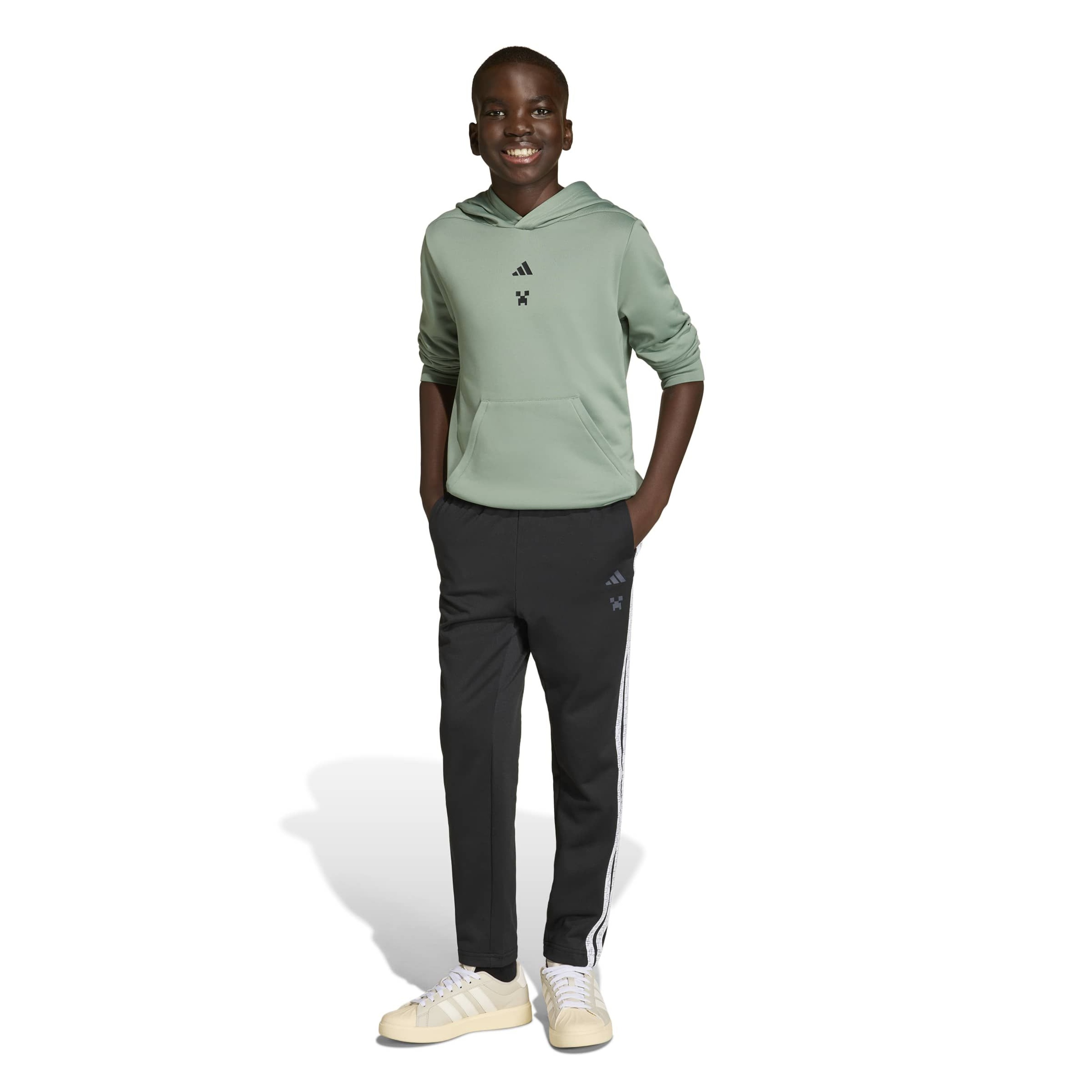 Digital adventures meet real-world comfort with the Minecraft Training Hoodie. Designed for junior gamers who love to play online and offline, this hoodie is a cosy companion for everyday activities. Featuring the iconic adidas Minecraft lock-up logo and a bold Creeper graphic on the back, it’s a playful choice for active kids. Made from soft fleece, it keeps them feeling cosy during outdoor play, while thumb holes offer extra comfort without restricting movement—suitable for gaming or playground adventures. With Climawarm technology, the hoodie helps manage moisture so they can stay feeling comfortable and dry. Fun, practical, and with a dash of Minecraft magic, it’s a versatile piece for everyday adventures.