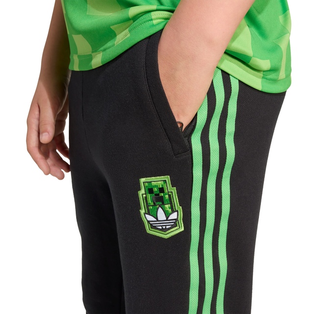 The adidas Boys' Minecraft Pants offer ultimate comfort and style, crafted from soft cotton French terry for a cozy feel. The adjustable drawcord waist ensures a secure fit, while the playful Minecraft Creeper graphic adds a fun touch to the iconic adidas Trefoil.