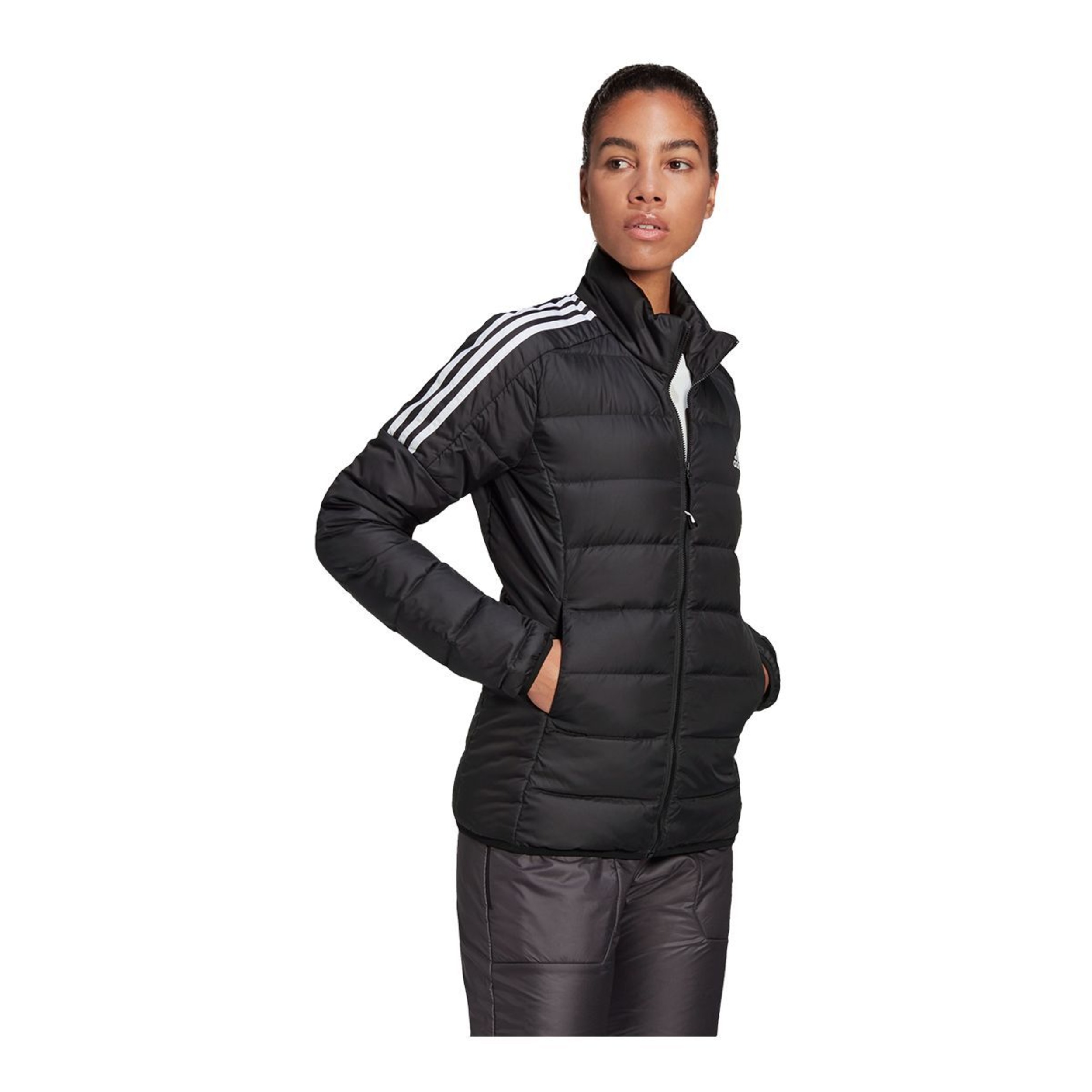 The adidas Essentials Down Jacket offers lightweight warmth on cold days. This jacket offers duck down insulation to seal in the heat. The classic 3-Stripe detail offers a street-style feel. With water repellant coating, this down jacket protects you from winter weather conditions. Slip-in pockets for convenience. Online only.