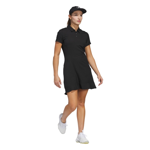 The adidas Golf Women's Ultimate Solid Dress provides effortless movement and all-day comfort on the golf course. This regular fit performance dress features stretch fabric and built-in shorts to support you through every swing from tee off to the clubhouse. Made with eco-friendly recycled polyester, it has convenient front zip pockets and a three-button polo collar.