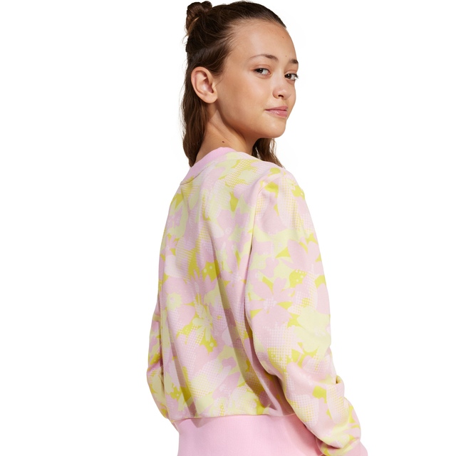 The adidas Junior Girls' French Terry Flower Sweatshirt brightens up any outfit with its fresh flower print. Made from soft French terry fabric, it offers comfort and iconic adidas style. The loose, slightly cropped fit pairs perfectly with high-waisted jeans or joggers. Crafted with recycled and renewable materials, this sweatshirt helps reduce waste and supports a sustainable future.