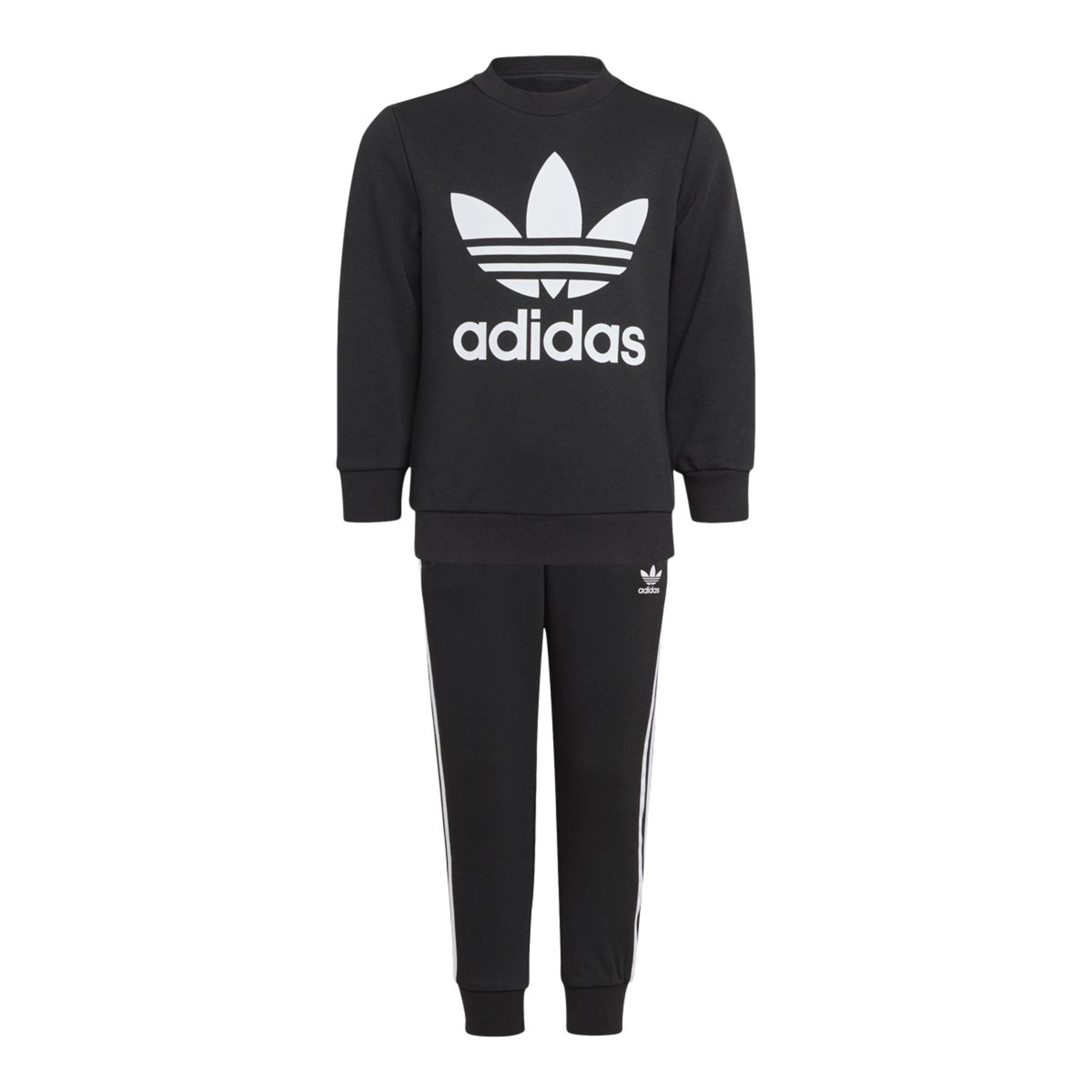 The adidas Kids' Adicolor 3-Stripes Crew Sweatshirt Set is a cozy French terry outfit inspired by adidas' 1980s heritage designs. The soft cotton-blend fabric has a regular fit with ribbed cuffs and hem on the sweatshirt. It sports classic adidas branding with 3-Stripes on the pants and the iconic Trefoil logo on the chest.