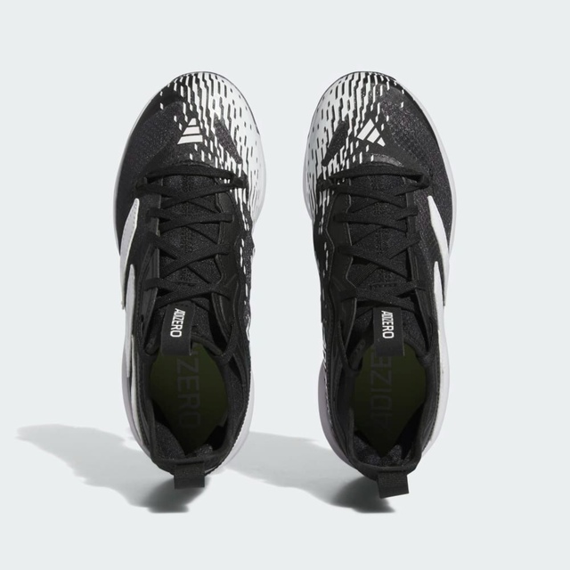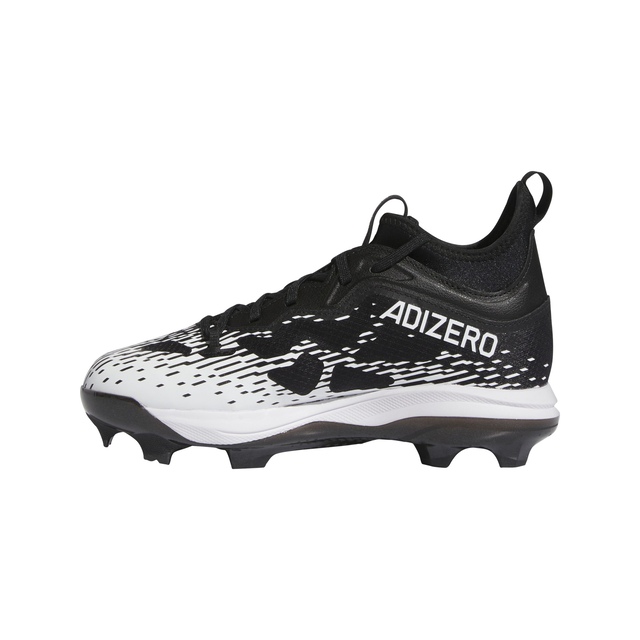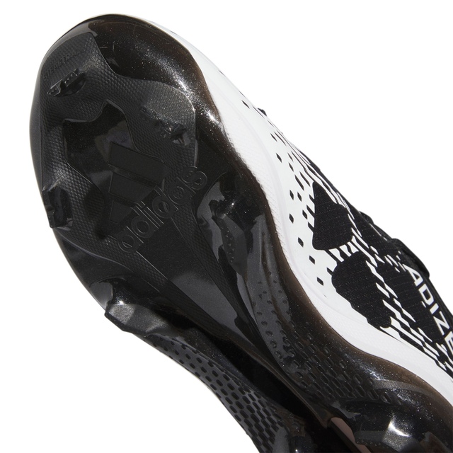 The new wave of speed is here to stay. Watch them lace up these kids' adidas baseball cleats and run the bases. The shoes have a soft, breathable upper with Sprintskin zones for lightweight durability. The Lightstrike midsole is incredibly responsive, whether they're rounding second base to leg out a triple or tracking the ball in the outfield. The TPU lugs are carefully placed to give kids sure-footed traction on grass or dirt. Made with a series of recycled materials, this upper features at least 50% recycled content. This product represents just one of our solutions to help end plastic waste.