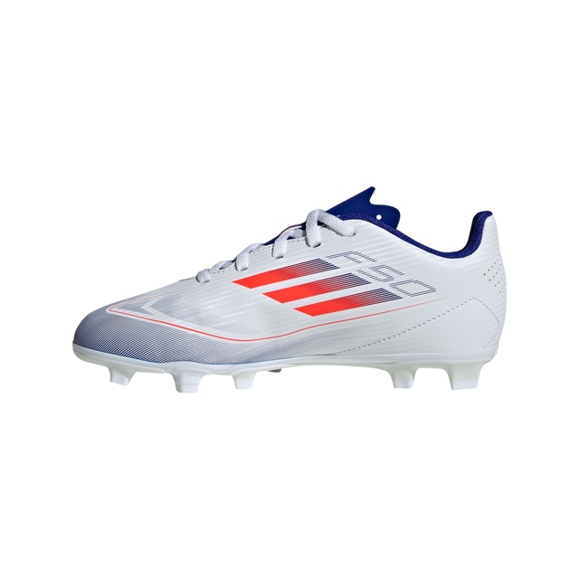 These adidas Kids' F50 Club Firm Ground Cleats keep you comfortable with a textured synthetic upper and perforated tongue. Underneath, a versatile outsole ensures you stay ahead of the competition on a variety of surfaces. This product features at least 20% recycled materials. By reusing materials that have already been created, we help to reduce waste and our reliance on finite resources and reduce the footprint of the products we make.