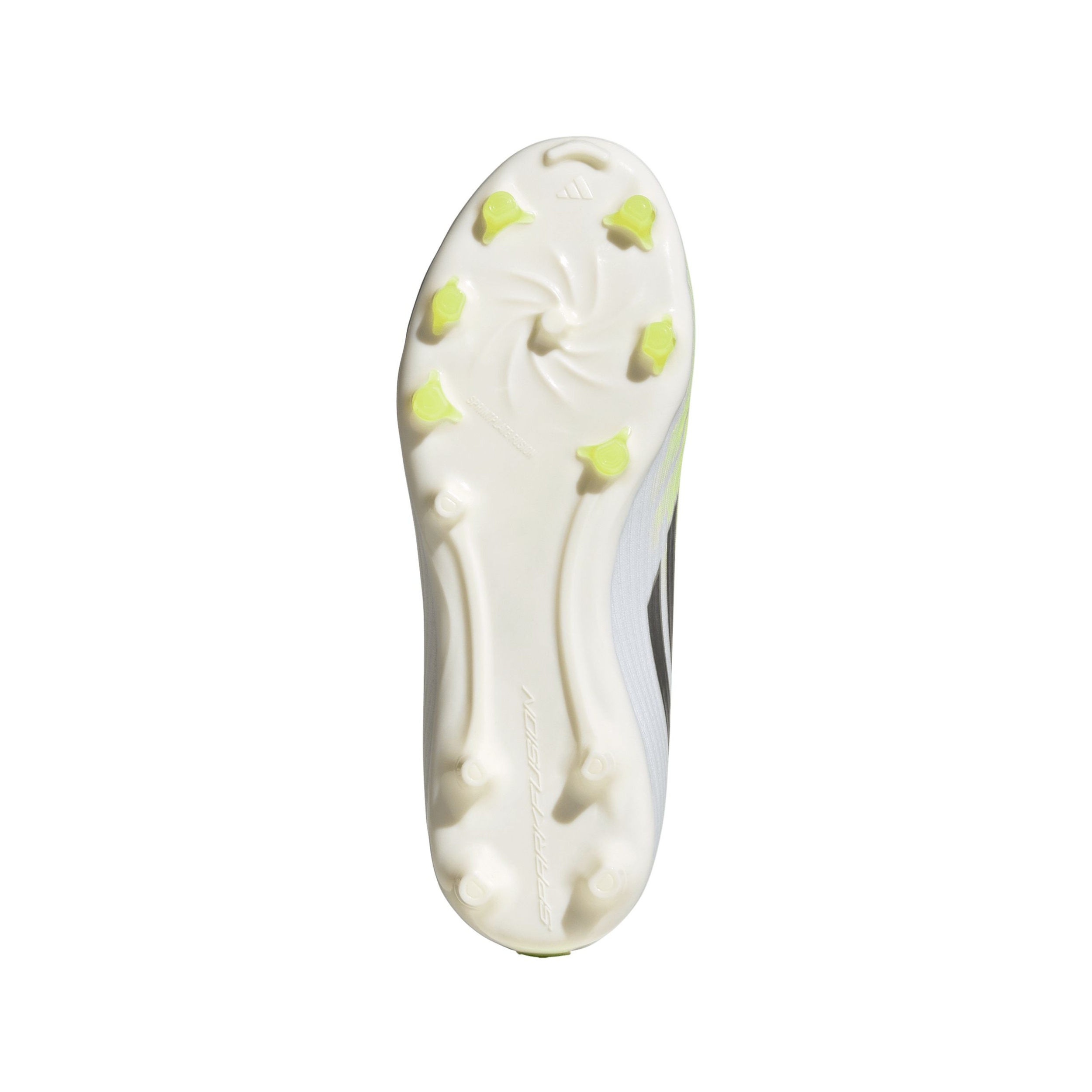 The F50 Sparkfusion League medium cut firm ground and artificial ground football boots offer a snug fit with an extended knit collar that moulds to the shape of kids' feet for responsive comfort during play. The Sprintplate Fusion technology provides traction and comfort during direction changes. With semiconical studs, these boots are suitable for both natural and artificial grass pitches. The Fiberskin upper boosts ball touch, giving young players an edge. Adidas has crafted these boots with performance in mind, incorporating a 360-degree rotation zone for faster changes of direction. These boots are built to keep up with every move, whether it's a school match or a weekend kickabout.