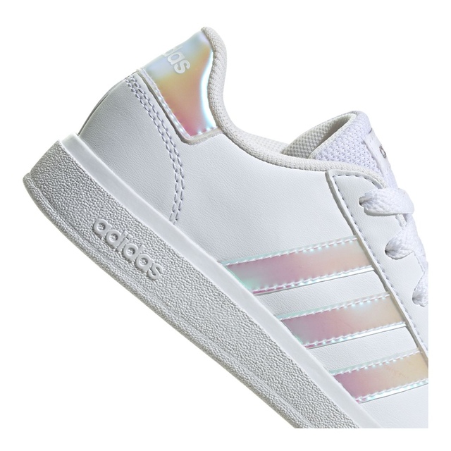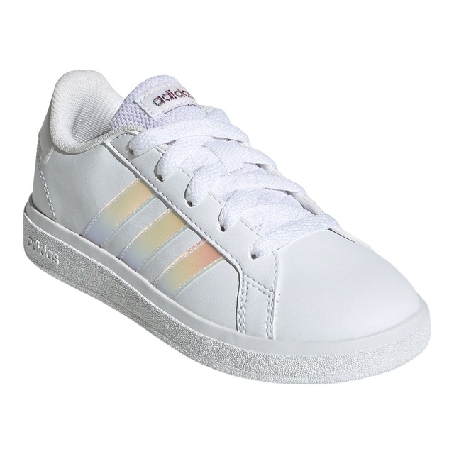 adidas has done their homework and reimagined the kids' classic Grand Court sneakers. With a smooth, synthetic upper that can withstand knocks and bumps and a flexible rubber cupsole that supports and protects growing feet, these lace-up shoes get a big tick from both kids and parents. Made with a series of recycled materials, this upper features at least 50% recycled content.