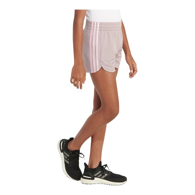 The adidas Kids' Mesh 3-Stripes Training Shorts are designed for young athletes. Crafted with breathable mesh fabric, these shorts feature a slip-on style with an elastic waistband for comfort during active play. Additionally, the signature 3-Stripes branding delivers iconic style to these adidas shorts.