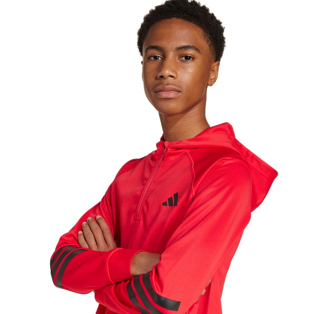 This adidas Kids' NXT 1/4 Zip Hoodie keeps up with your every move. Breathable and lightweight, it allows you the freedom to stretch, run and jump. Climacool helps you manage sweat with materials that wick and manage sweat quickly. Its fast-dry fibres give you a fresh-skin feel. Made with 100% recycled materials, adidas helps to reduce waste and its reliance on finite resources.