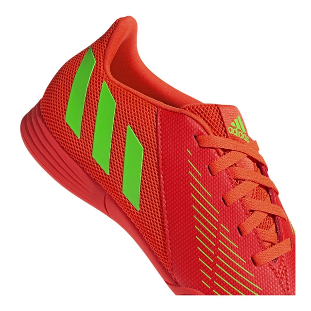 Swerve ordinary to find your edge. Introduce a brand-new side to your game in these juniors' adidas Predator indoor soccer shoes. Their soft synthetic upper includes a textured finish to help you master the ball and a mesh quarter for staying cool during intense play. Underneath, a grippy rubber outsole bites down to help you dominate on flat, indoor surfaces. Made in part with recycled content generated from production waste, e.g. cutting scraps, and post-consumer household waste to avoid the larger environmental impact of producing virgin content.