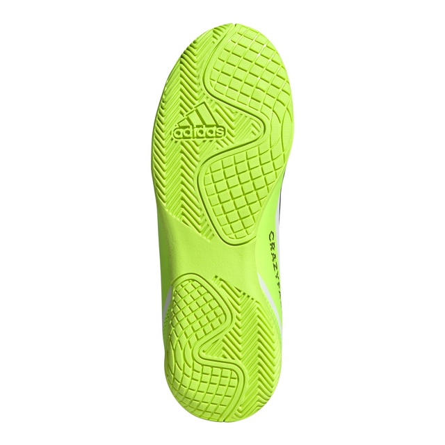 The game's gone? Nah. It's just waiting for you to change it. Again. And again. Like to keep your rivals guessing? Go wild in adidas X Crazy fast. The grippy rubber outsole on these juniors' soccer shoes is all about keeping you quick on flat, indoor surfaces without leaving a mark. Soft and slightly textured, the synthetic upper joins forces with a breathable perforated tongue to ensure you stay comfortable at all speeds. Made with a series of recycled materials, this upper features at least 50% recycled content. This product represents just one of our solutions to help end plastic waste.