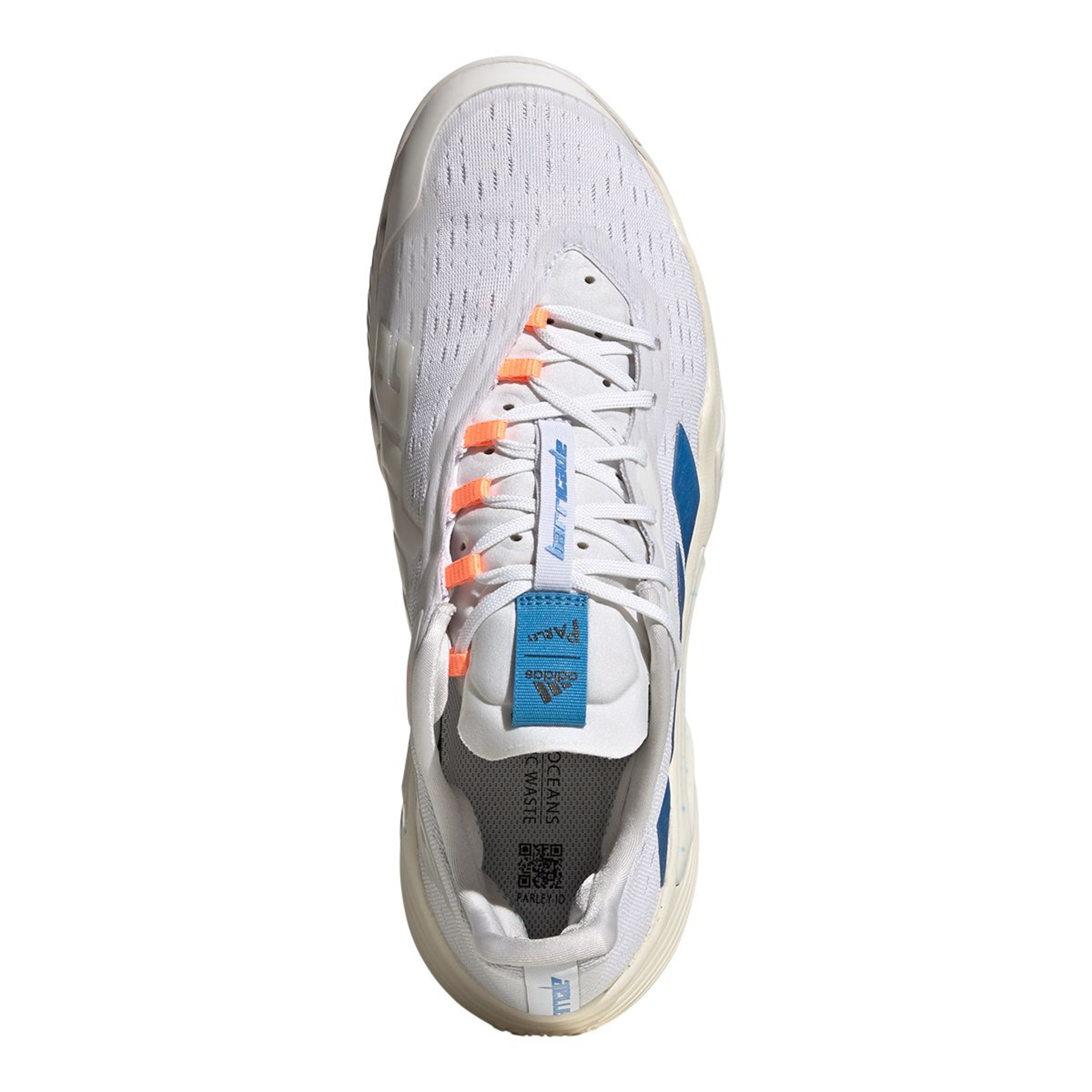 Serve for the oceans. Part of an adidas collection created for the world's most famous grass court tournament, these Barricade tennis shoes put the spotlight on plastic waste. Built to control the court, they keep you firmly locked in thanks to their adaptive lacing system and foam Sensepods. Torsion System adds rock-solid stability through every slide and cut, while the Bounce midsole cushions landings. Educate and act. Head to Parley for the Oceans website to find out more, sign up and get involved at adidas.com/parley. This shoe's upper is made with a high-performance yarn which contains at least 50% Parley Ocean Plastic — reimagined plastic waste, intercepted on remote islands, beaches, coastal communities and shorelines, preventing it from polluting the ocean. The other 50% of the yarn is recycled polyester.