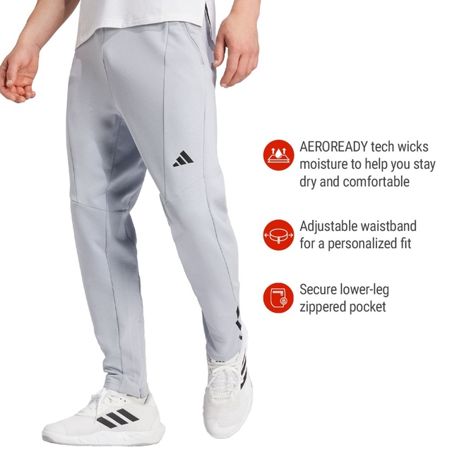 The adidas Men's D4T Training Pants combine eco-friendly materials with performance technology for your workouts. Made from 75% recycled polyester, 20% cotton, and 5% elastane knit, these slim-fit pants offer stretch and durability. The AEROREADY moisture-wicking technology of these training pants keeps you dry and comfortable during intense sessions.