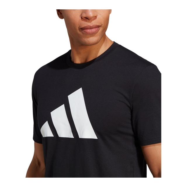 Elevate your workout wearing this stylish adidas Men's Extended Size TR 3 Bar Logo T-Shirt. Offering optimal coverage during overhead exercises, its AEROREADY technology helps you stay dry. Featuring a breathable blend of recycled polyester and cotton, this adidas tee supports the brand's commitment to ending plastic waste.