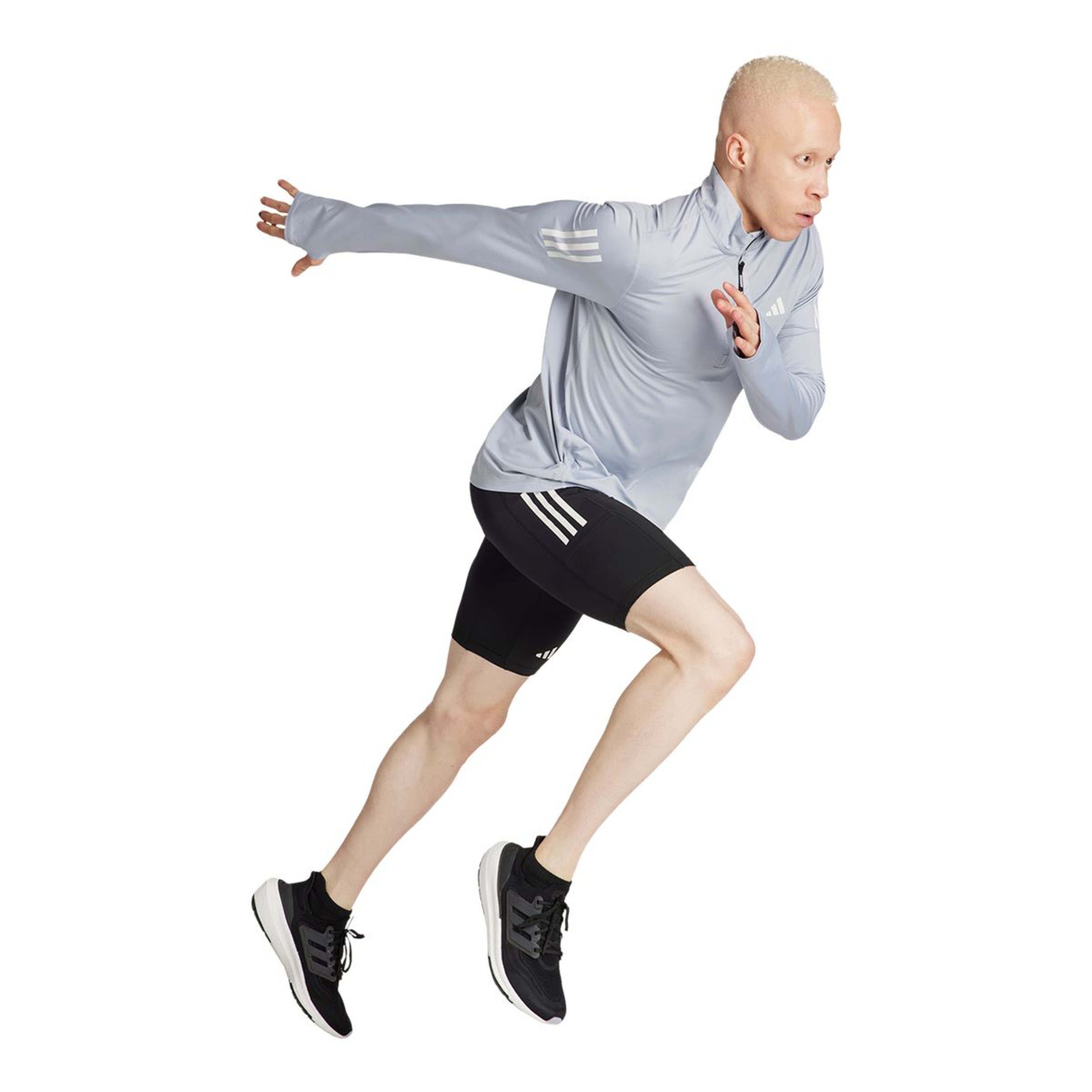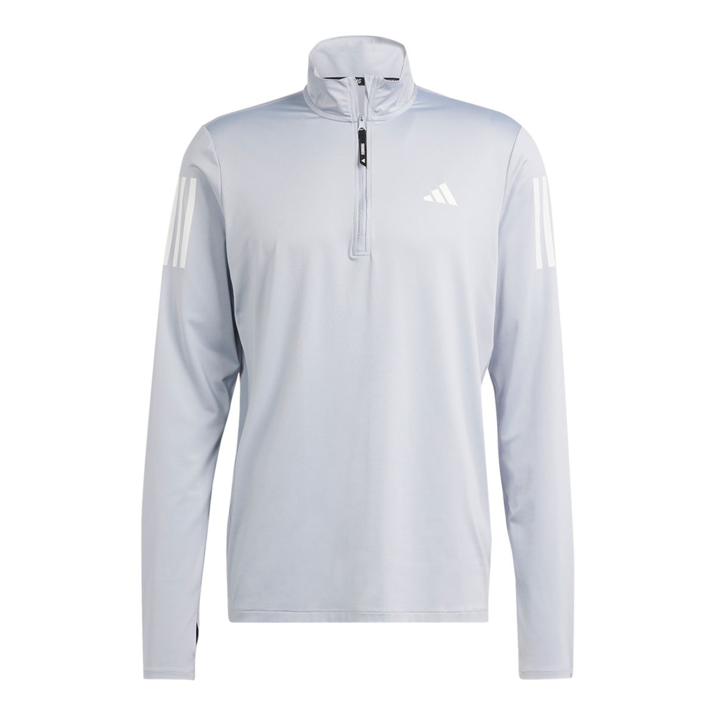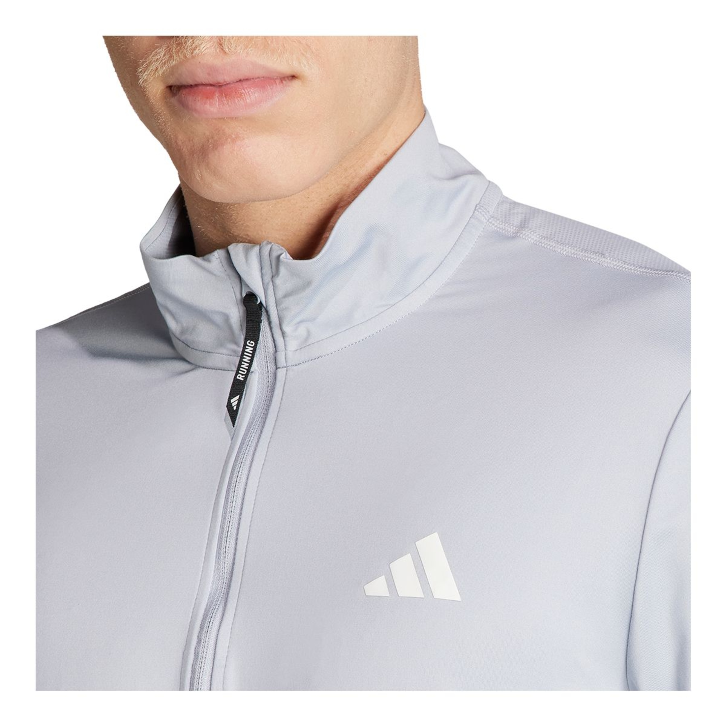 Push through each mile in this adidas running jacket. AEROREADY technology manages moisture so you'll stay comfortable when the intensity rises. Reflective details get you seen at dawn or dusk, while a half-zip and thumbholes dial in the right level of warmth. This product is made with at least 70% recycled materials. By reusing materials that have already been created, adidas helps to reduce waste and its reliance on finite resources and reduce the footprint of the products it makes.