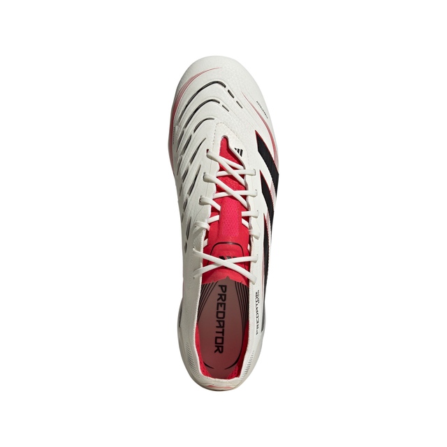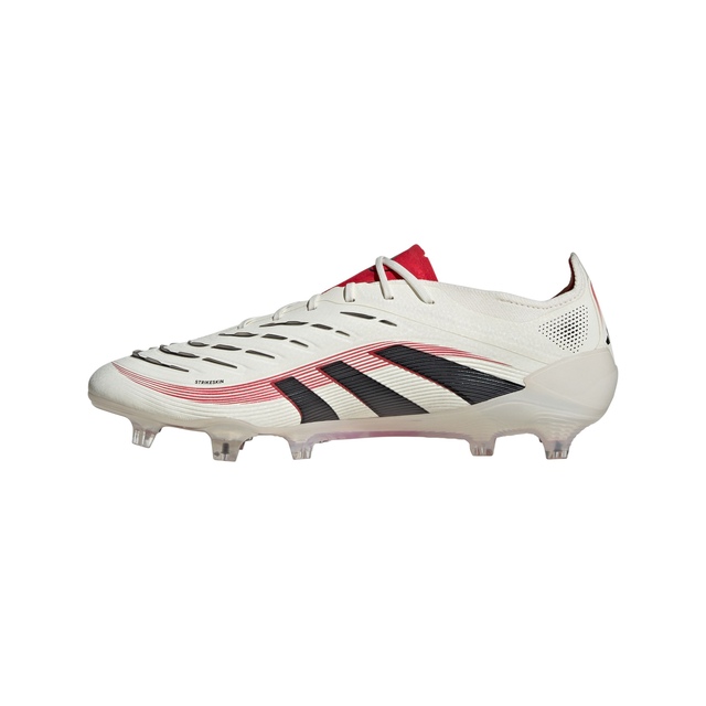 The adidas Men's Predator Elite Firm Ground Soccer Cleats are engineered for peak performance on firm ground. Strategically placed rubber Strikeskin fins on the flexible HybridTouch upper deliver exceptional ball contact and control. The Controlframe 2.0 firm ground outsole ensures optimal stability, while the adidas PRIMEKNIT collar offers a secure, supportive fit.