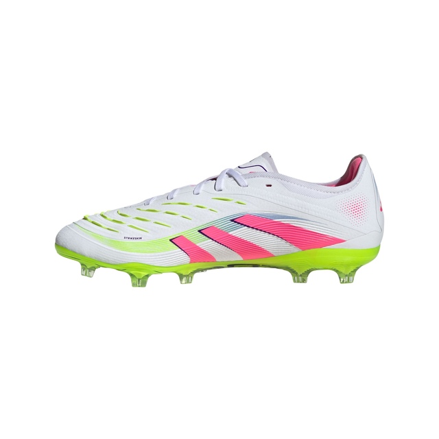 Go into every game knowing you'll score in the adidas Men's Predator Pro Firm Ground Soccer Cleats crafted for goals. Grippy rubber Strikeskin fins on the soft, flexible HybridTouch upper assist with every strike of the football. Underneath, a full-length Control plate outsole offers all the stability you need to set your sights on firm ground pitches.