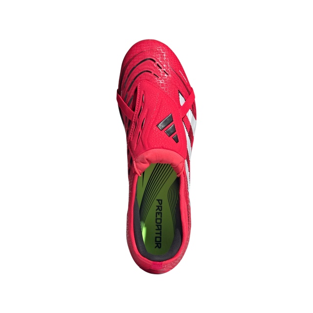Go into every game knowing you'll score in adidas Men's Predator Pro Foldover Tongue Firm Ground Soccer Cleats crafted for goals. A classic fold-over tongue and rubber Strikeskin fins strategically placed onto the soft, flexible HybridTouch upper assist with every strike of the football. Underneath, a full-length Control plate outsole offers all the stability you need to set your sights on firm ground pitches.