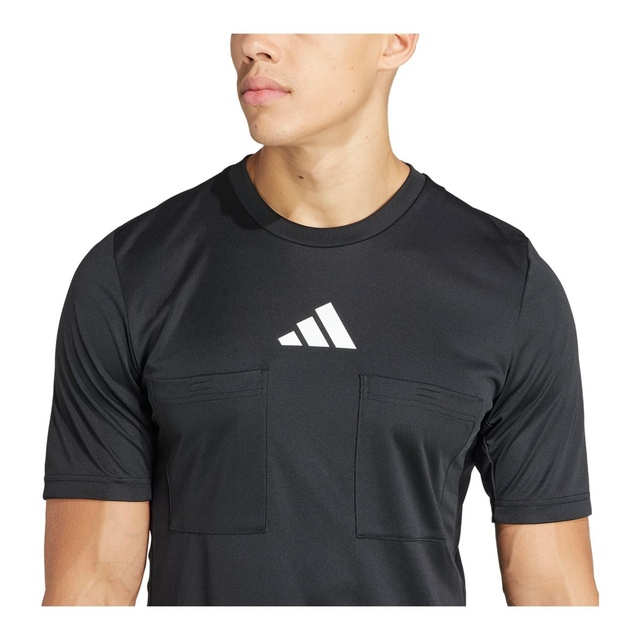 On the football pitch, every decision matters. That's why top referees rely on this adidas jersey. Its special underarm construction allows refs to make big calls without worrying about coming untucked. AEROREADY wicks away moisture to reduce distractions and two chest pockets help keep cards handy. This product is made with 100% recycled materials. By reusing materials that have already been created, Adidas helps to reduce waste and their reliance on finite resources and reduce the footprint of the products that they make.