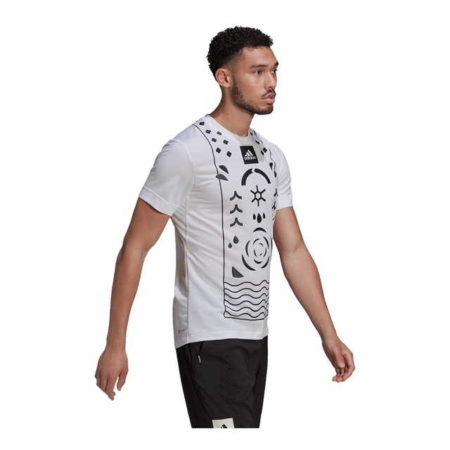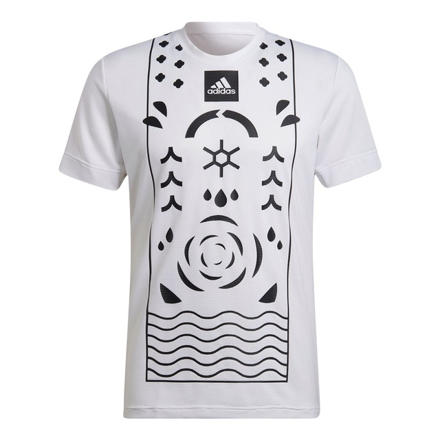 Celebrate the growth of diversity in sport. Bold graphics inspired by the botanical gardens surrounding Paris' premier tennis destination cover the front of this adidas t-shirt. Made with cooling HEAT.RDY for no-distraction play on the hottest days, you'll see it on show during the climax of the clay court season. Its FreeLift construction ensures your arms have freedom to swing when it's time to bring out the big guns.