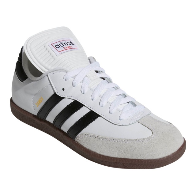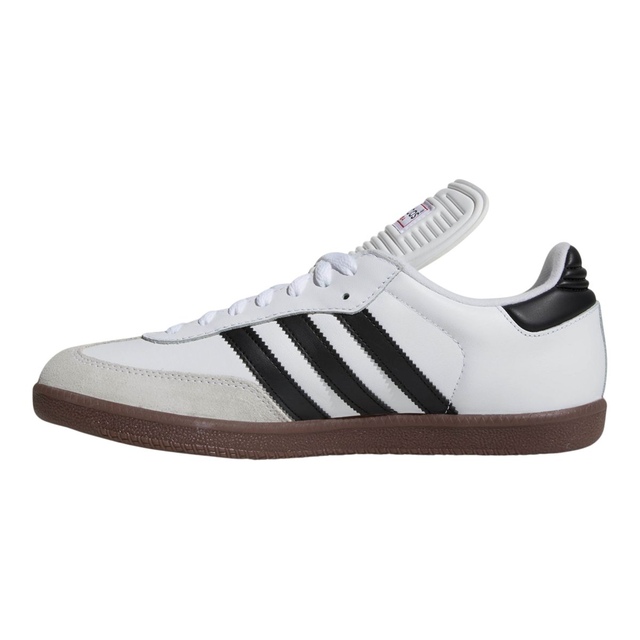 adidas Men's Samba Classic Sneakers are an iconic design from 1950, created for football training on frozen pitches. This version of the adidas Samba sneakers stays true to the original, featuring an all-leather upper, serrated 3-Stripes, and a gum rubber outsole for excellent traction and durability. These men's adidas Samba shoes boast woven branding on the tongue and printed detailing for timeless adidas style.