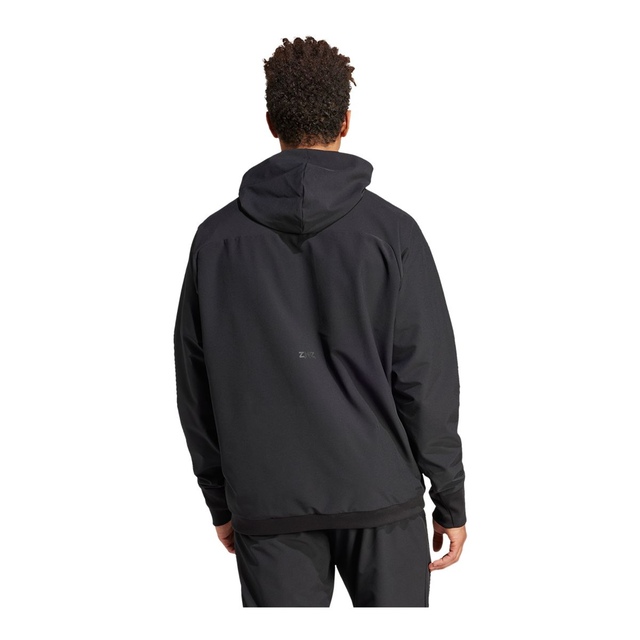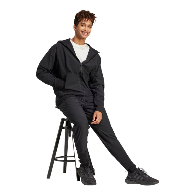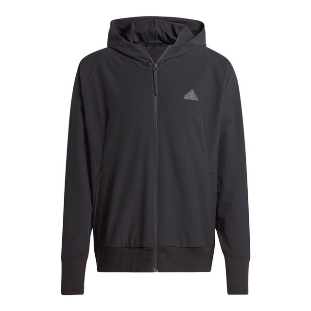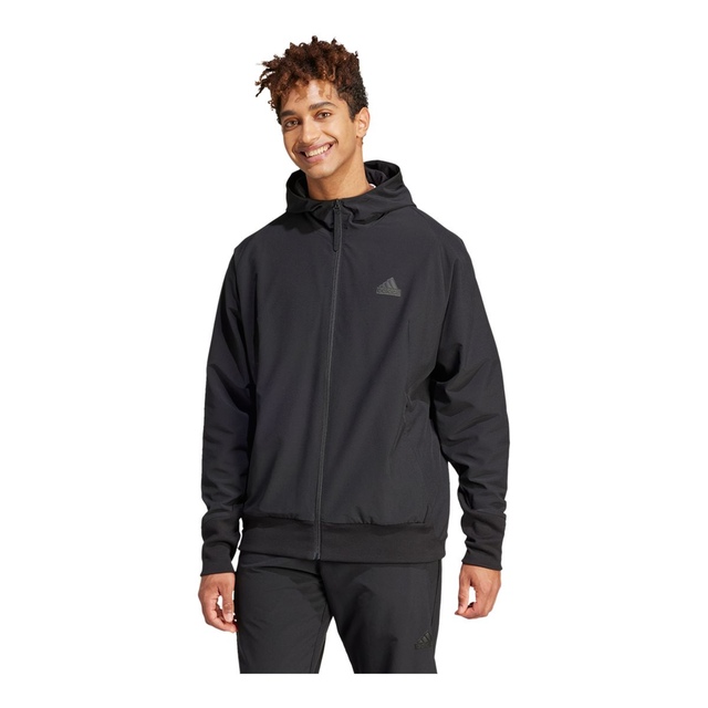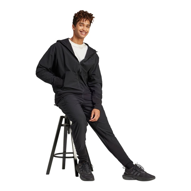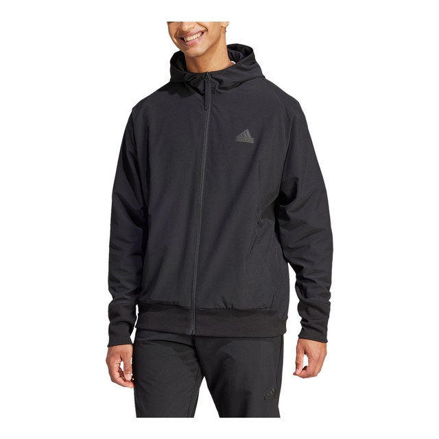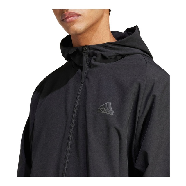 Seek adventure in this hooded jacket from adidas. Its streamlined silhouette hides a multitude of surprises within — zip pockets to stash essentials for any escapade and ribbed cuffs for a snug and comfy fit. An ideal companion for the open road, the soft polyester doubleweave fabric with added stretch features AEROREADY to keep you dry whether watching the sunrise or chasing it. By choosing recycled, adidas is able to reuse materials that have already been created, which helps to reduce waste. Renewable materials choices will help us to remove their reliance on finite resources. Adidas products made with a blend of recycled and renewable materials feature at least 70% total of these materials.