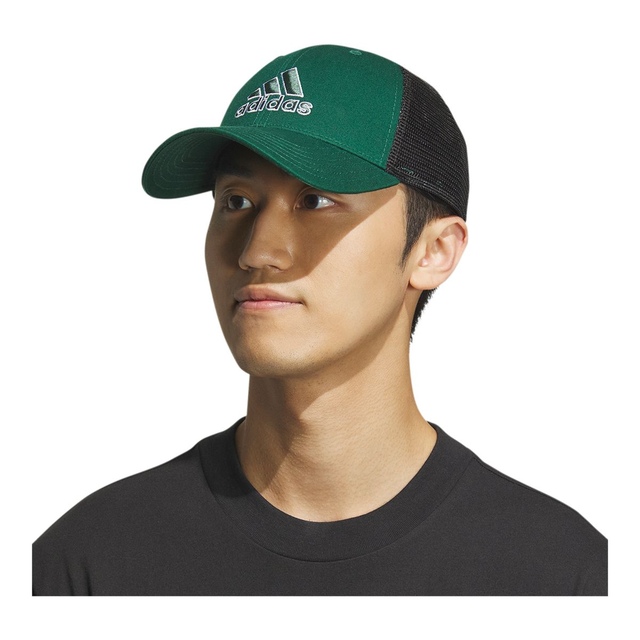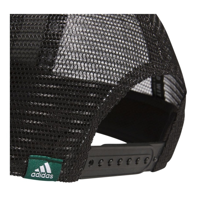 The adidas Men's Trucker Hat is designed with a structured six-panel silhouette and breathable mesh back panels. This one-size-fits-most adidas hat features a pre-curved brim and adjustable snapback closure, upholding the Better Cotton Initiative to support sustainable cotton farming.