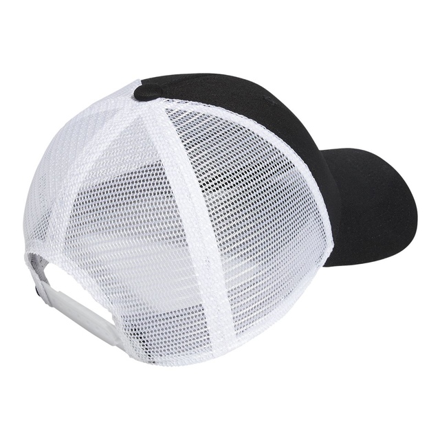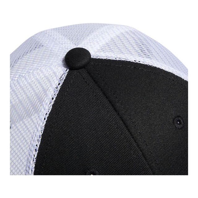 The adidas Men's Trucker Hat is designed with a structured six-panel silhouette and breathable mesh back panels. This one-size-fits-most adidas hat features a pre-curved brim and adjustable snapback closure, upholding the Better Cotton Initiative to support sustainable cotton farming.