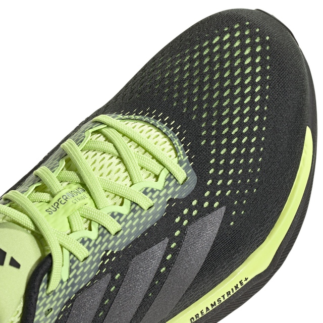 Experience the blend of comfort and performance with the Supernova Stride running shoes for men. Crafted with a breathable, lightweight engineered mesh upper paired with a soft eyestay, these shoes ensure optimal comfort. The innovative Dreamstrike+ power foam in the forefoot enhances cushioning, while the full-length Adiwear outsole offers superior grip. Made with recycled and renewable materials, these shoes are as sustainable as they are stylish. Perfect for everyday running adventures.