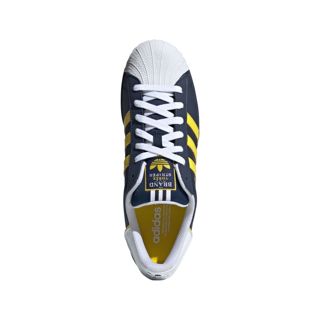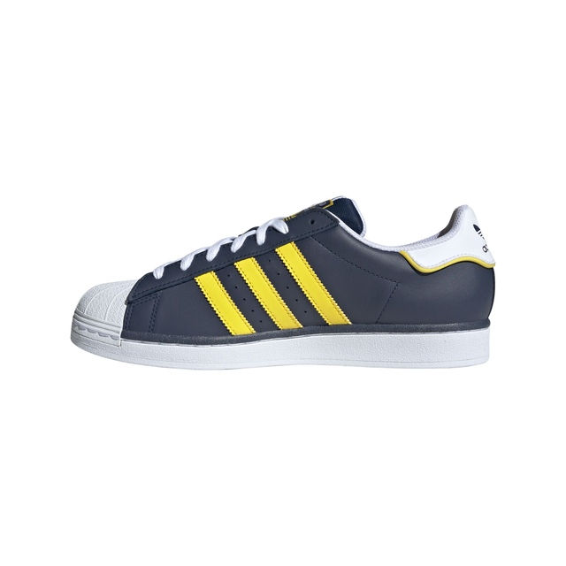 Throw it back in style. These iconic adidas Superstar shoes were ahead of their time when they first hit the streets in the '70s. Now they're back to show today's sneaker culture how it's done. Inspired by an adidas track suit that allowed for quick changes, the woven label on the tongue is a nod to '90s attitude. The smooth leather upper, shell toe and rubber sole still deliver sport-inspired style with everyday comfort. For over 50 years, the Superstar has been the shoe of choice for legends on courts and streets. Step into history.
