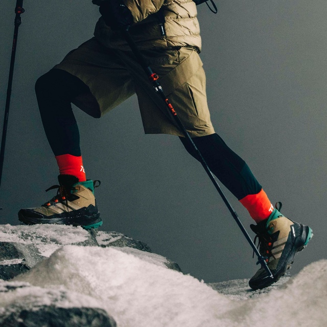 Made for cold, damp weather, the adidas Terrex Skychaser AX5 Medium GORE-TEX CLIMAWARM+ hiking shoes are your ticket to winter adventure. A GORE-TEX membrane seals out wet conditions while letting your feet breathe for dry, comfortable feet in wet conditions. CLIMAWARM+ traps heat and releases sweat for a warm, dry and focused performance. A medium-height cuff provides extra support for your ankles across uneven terrain, and a Continental™ rubber outsole provides secure footing, wet or dry. CLIMAWARM+ advanced insulation provides superior engineering with advanced materials that unite for warm, dry and focused performance. Insulating materials trap warmth for optimal body temperature.