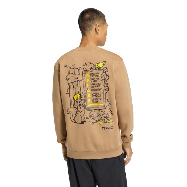 The Terrex Trail Rules Graphic Sweatshirt by adidas is your go-to for casual comfort with a touch of outdoor flair. This regular-fit sweatshirt offers a standard fit that is neither too tight nor too loose, making it perfect for layering on cooler days. The knit construction ensures warmth and comfort, whether you're hiking or relaxing.