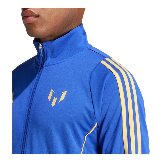 Get ready to make your mark on the pitch in this men's tracksuit jacket from adidas. The slim fit and stand-up collar help keep the elements at bay. Moisture-managing AEROREADY helps keep you dry, so you can focus on the game. Lionel Messi graphics add a bold touch of soccer pride.