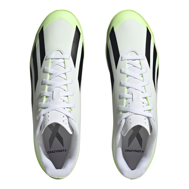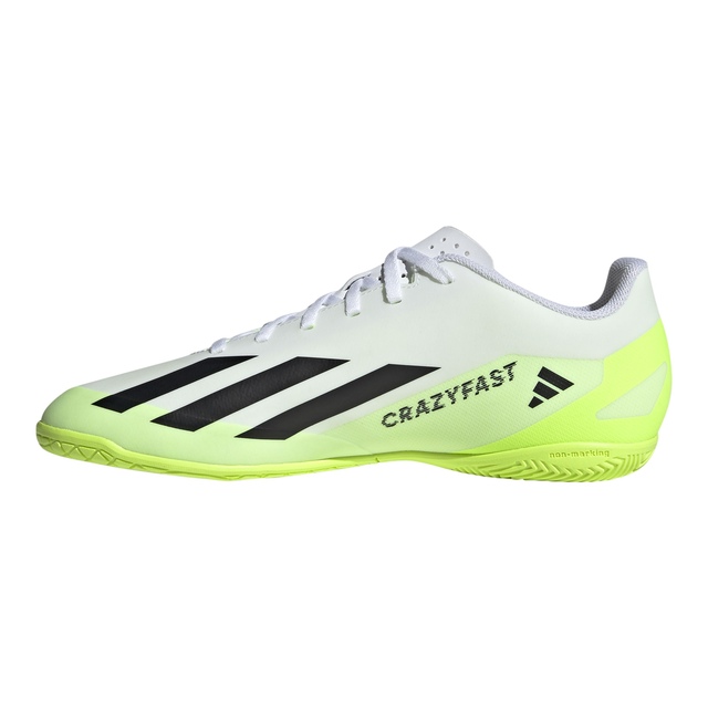 The game's gone? Nah. It's just waiting for you to change it. Again. And again. Like to keep your rivals guessing? Go wild in adidas X Crazyfast. The grippy rubber outsole on these soccer shoes is all about keeping you quick on flat, indoor surfaces without leaving a mark. Soft and durable, the coated textile upper is designed to deliver a solid feel for the ball when you're dribbling at speed. EVA in the midsole and a perforated tongue help keep you comfortable. Made with a series of recycled materials, this upper features at least 50% recycled content. This product represents just one of our solutions to help end plastic waste.