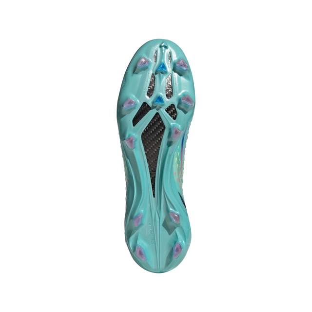 Stay connected to the game with the adidas Men's X Speedportal.1 Firm Ground Outdoor Soccer Cleats. Comfortable and foot-hugging, the updated Speedskin upper on these firm ground cleats has a stretchy adidas PRIMEKNIT collar, carbon heel lock, and stability fins for a secure fit at high speeds. Two extra forefoot studs on the Speedframe outsole help boost acceleration. Made with recycled materials, the upper of these lightweight soccer cleats has at least 50% recycled content.