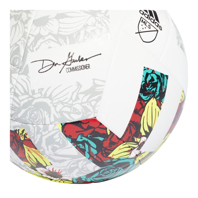 Play for unity. Showing off a striking arrangement of U.S. roses and Canadian bunchberries, this adidas MLS Training football champions the beautiful game's rich diversity. No matter how gruelling your sessions are, the ball will keep coming back for more thanks to its resilient butyl bladder and rugged, machine-stitched construction.