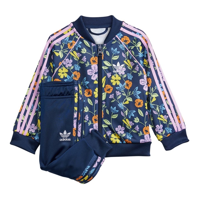 Let your baby be bold in blossoms. This adidas floral tracksuit for infants serves sporty attitude with a stylish twist. Signature 3-Stripes on the sides of the top and pants creates a coordinated vibe. Comfort comes standard thanks to soft tricot and a just-right fit, emphasised by a drawcord on the elastic waist. This product is made with at least 70% recycled materials. By reusing materials that have already been created, adidas helps to reduce waste and adidas’s reliance on finite resources and reduce the footprint of the products adidas makes.