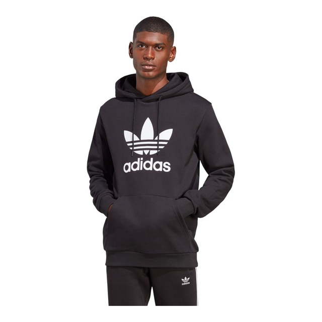 The adidas Originals Men's Trefoil Pullover Hoodie showcases the iconic Trefoil logo, a design loved by athletes and creators since the 1970s. Made from soft French terry cotton, it offers comfort and warmth. With adidas' commitment to sustainable cotton farming, this pullover hoodie is an eco-friendly choice that doesn't compromise quality or style.