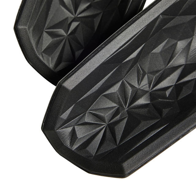 When your sights are set on dominating matches, confidence is key. These adidas soccer shin guards include flexible, EVA-backed shields that deflect and absorb impacts and separate, compressive retaining sleeves that ensure they're always where you need them to be. Embossed High Definition Grip elements scattered across the front of those shields add even more grip and shock absorption. Made with at least 20% recycled content to avoid the larger environmental impact of producing virgin content.