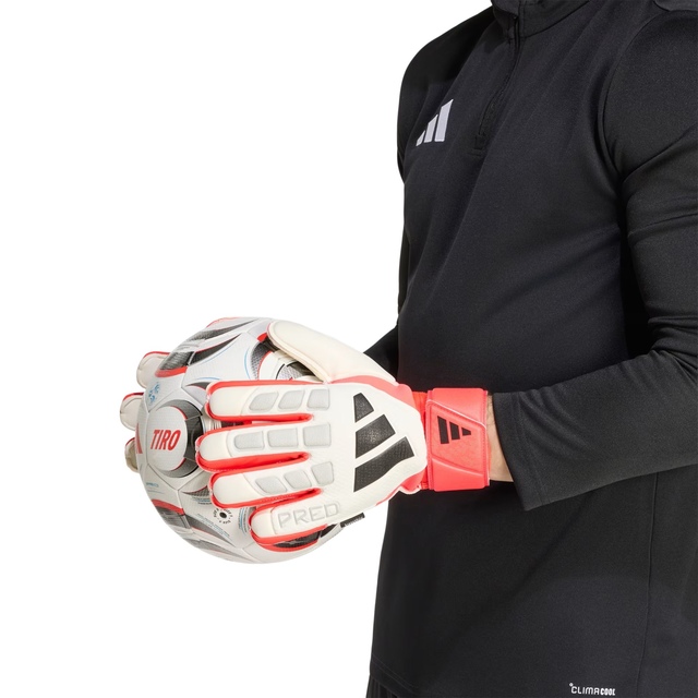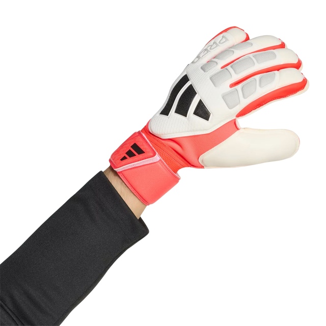 Elevate your performance with the adidas Predator Match Fingersave Senior Soccer Gloves. These high-performance goalkeeper gloves are crafted with advanced technology to help you make game-changing saves and support your team on the field. Featuring a secure elasticised bandage and a soft grip latex palm, these durable goalkeeper gloves ensure reliable handling in all weather conditions.
