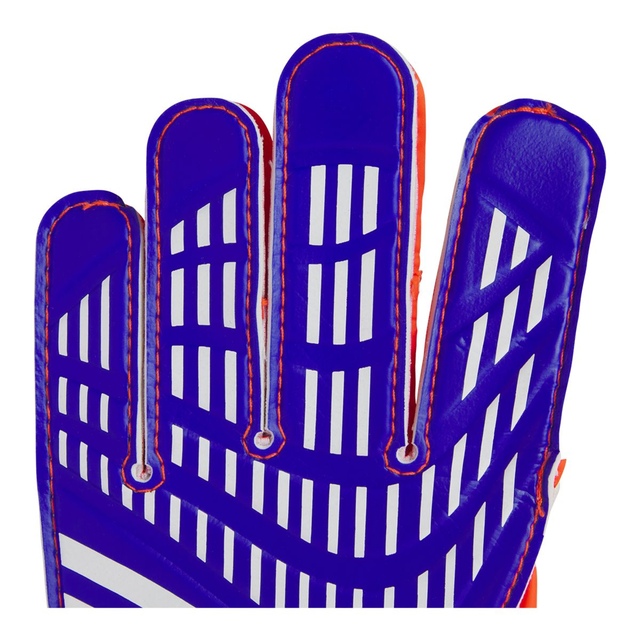 Target pinpoint punching and flawless ball handling in these adidas Predator Training Junior Gloves. Debossed High Definition Texture on the backhand adds accuracy to clearances, while a Soft Grip palm helps you cling to the soccer ball at crosses and cushions pile drivers. A fixed, half-wrap strap locks you in for confident training. A minimum of 50% of this product is a blend of recycled and renewable materials.