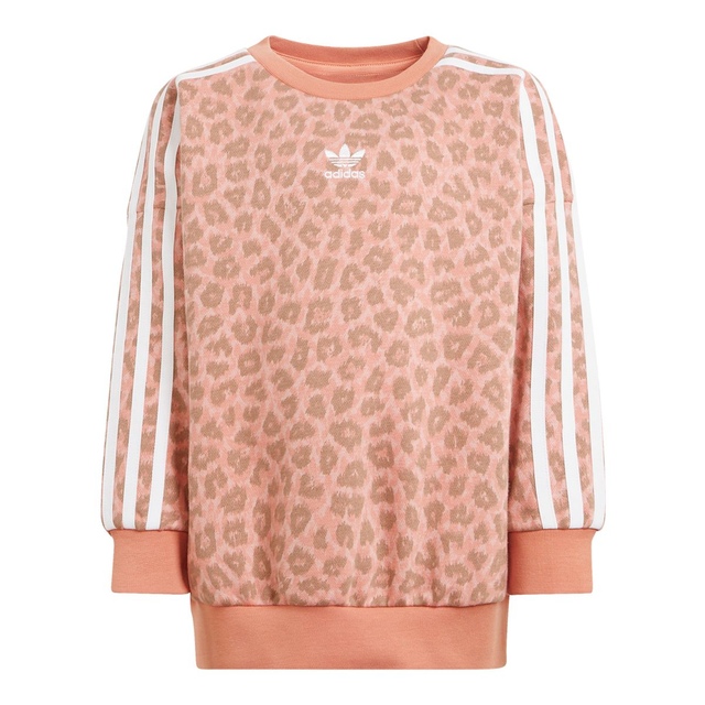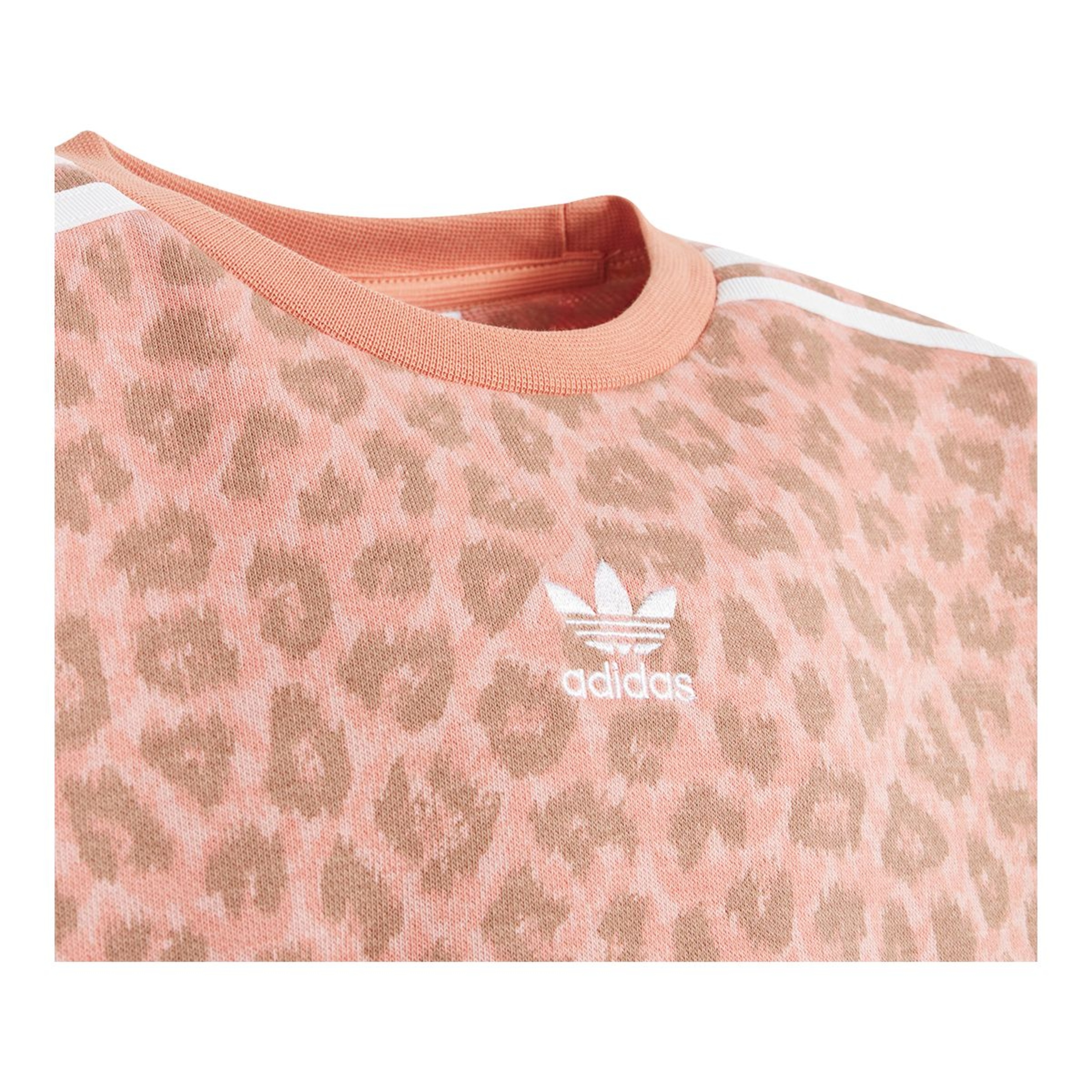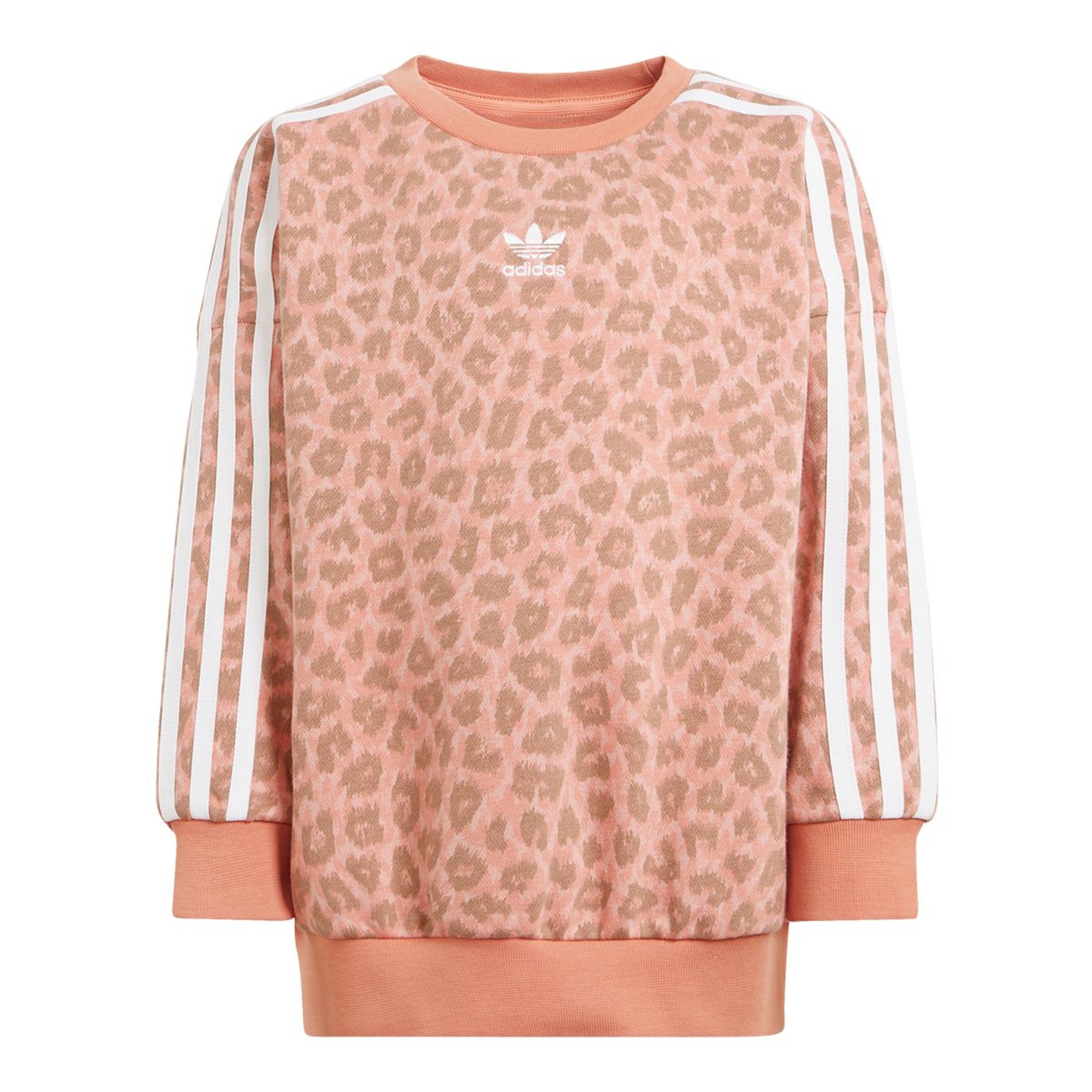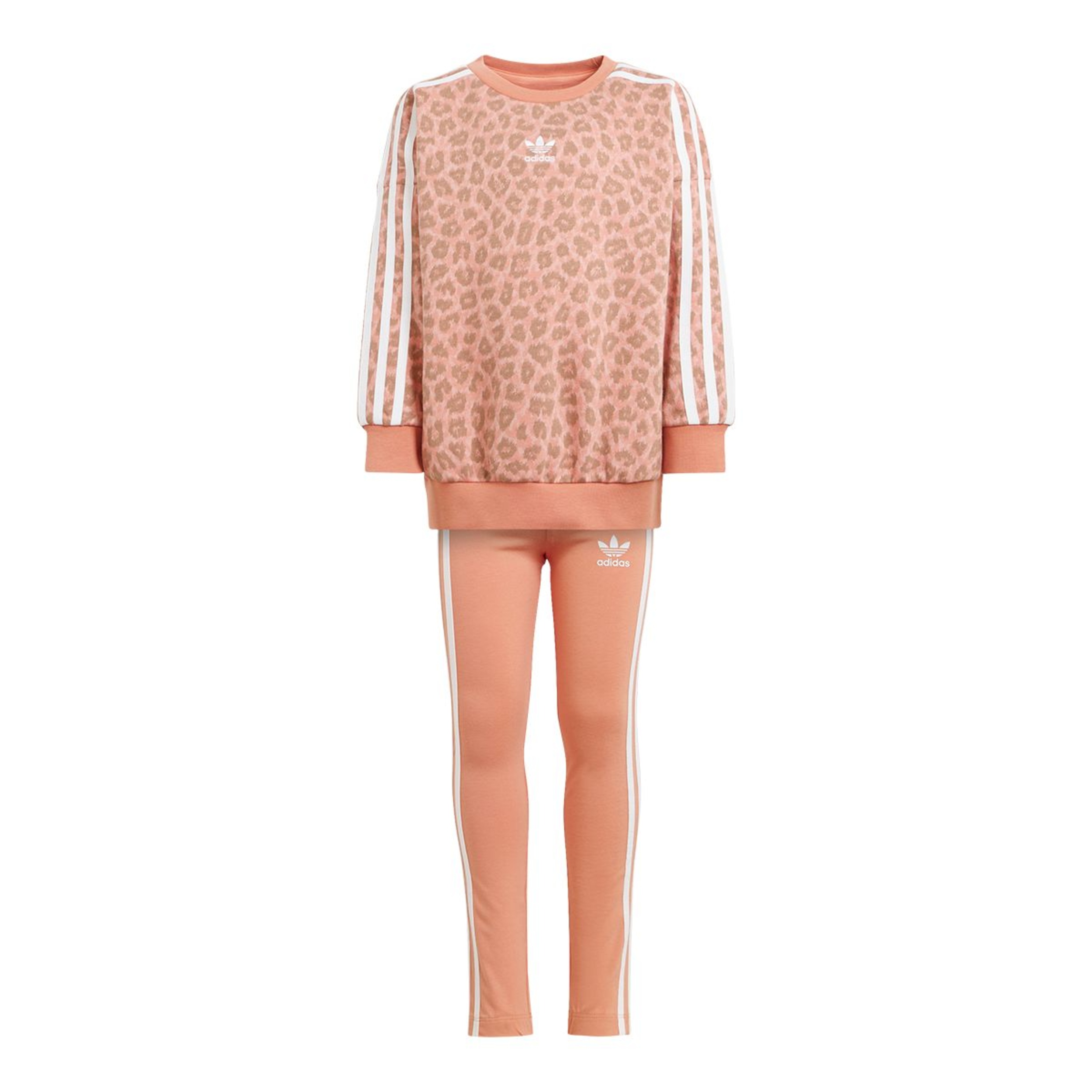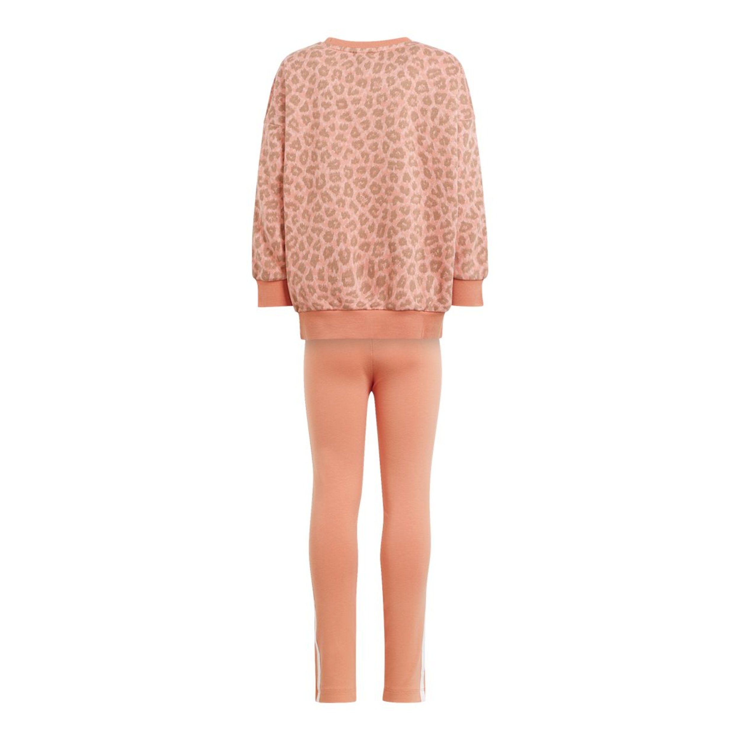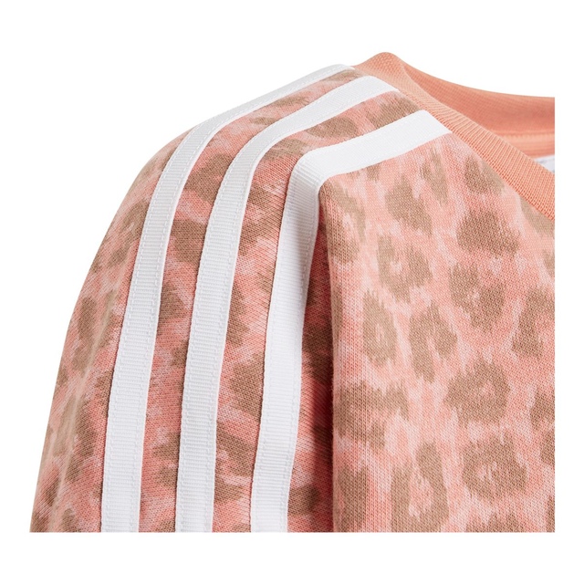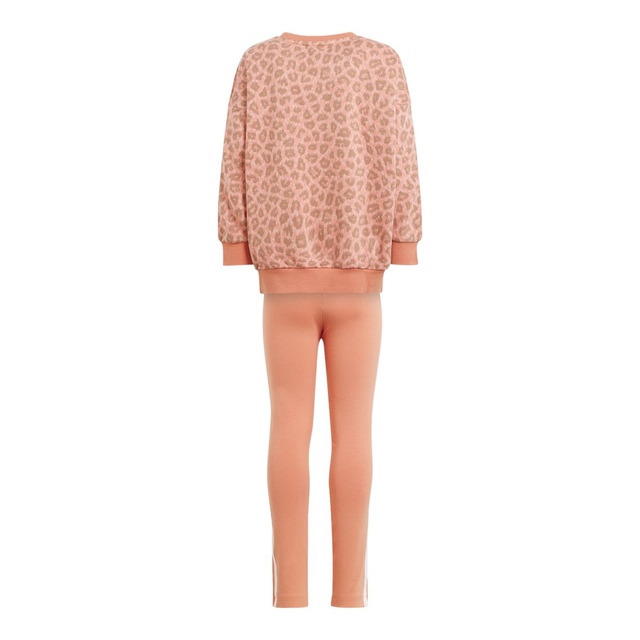 They can show off their wild side with this kids' adidas animal print crew set. Here's what you get from this two-piece ensemble: a cozy French terry sweatshirt featuring an all-over cheetah print, plus a pair of comfortable leggings cut from a stretchy single jersey material. Together these pieces make up one easygoing look that will encourage them to be the brave, powerful kid they are. Trefoil graphics and classic 3-Stripes add a signature sporty touch to the playful design. Adidas partner with Better Cotton to improve cotton farming globally. Better Cotton makes global cotton production better for the people who produce it, better for the environment it grows in, and better for the sector's future. Better Cotton is sourced via a chain of custody model called mass balance. This means that Better Cotton is not physically traceable to end products, however, Better Cotton Farmers benefit from the demand for Better Cotton in equivalent volumes to those Adidas "source". Find out more here: bettercotton.org/learnmore
