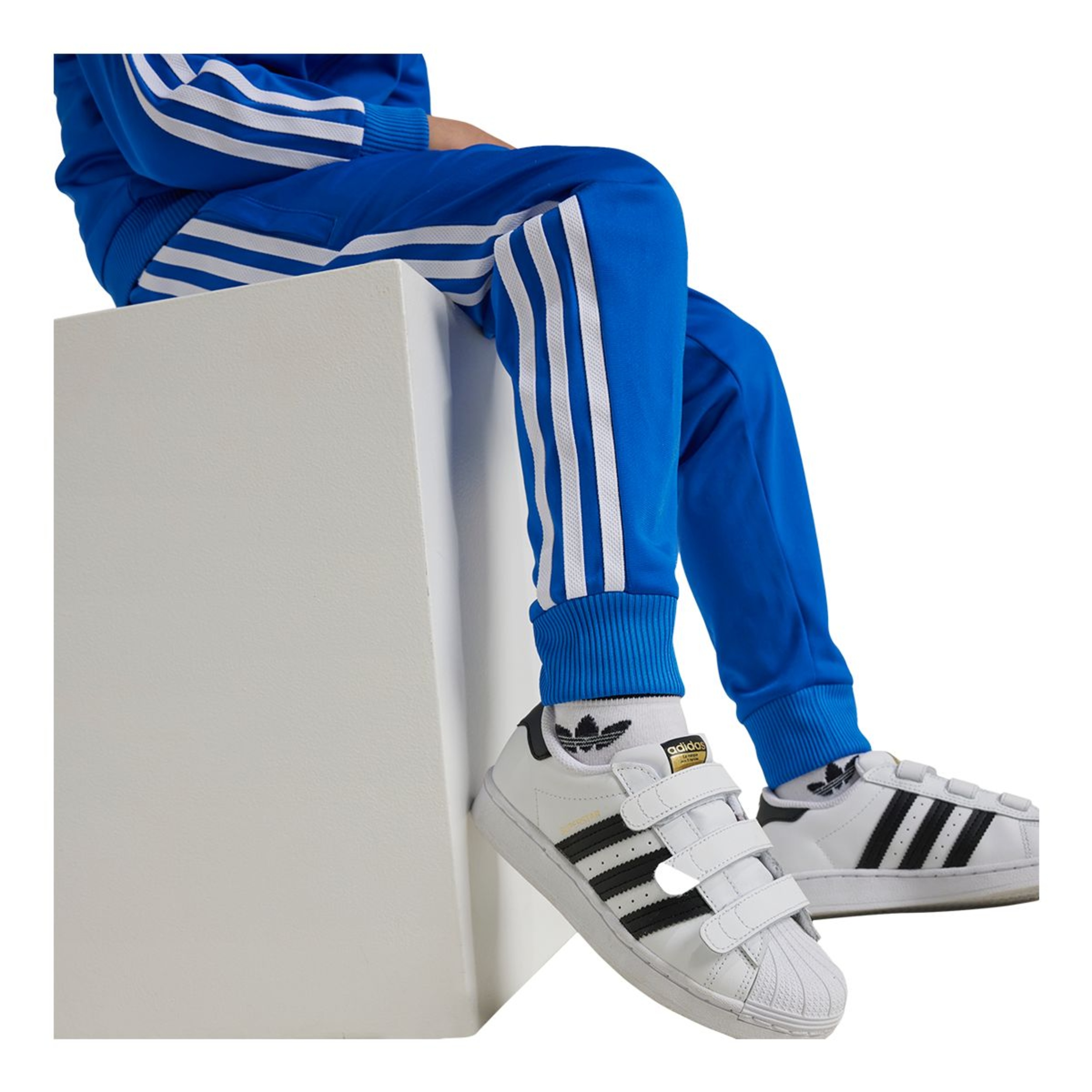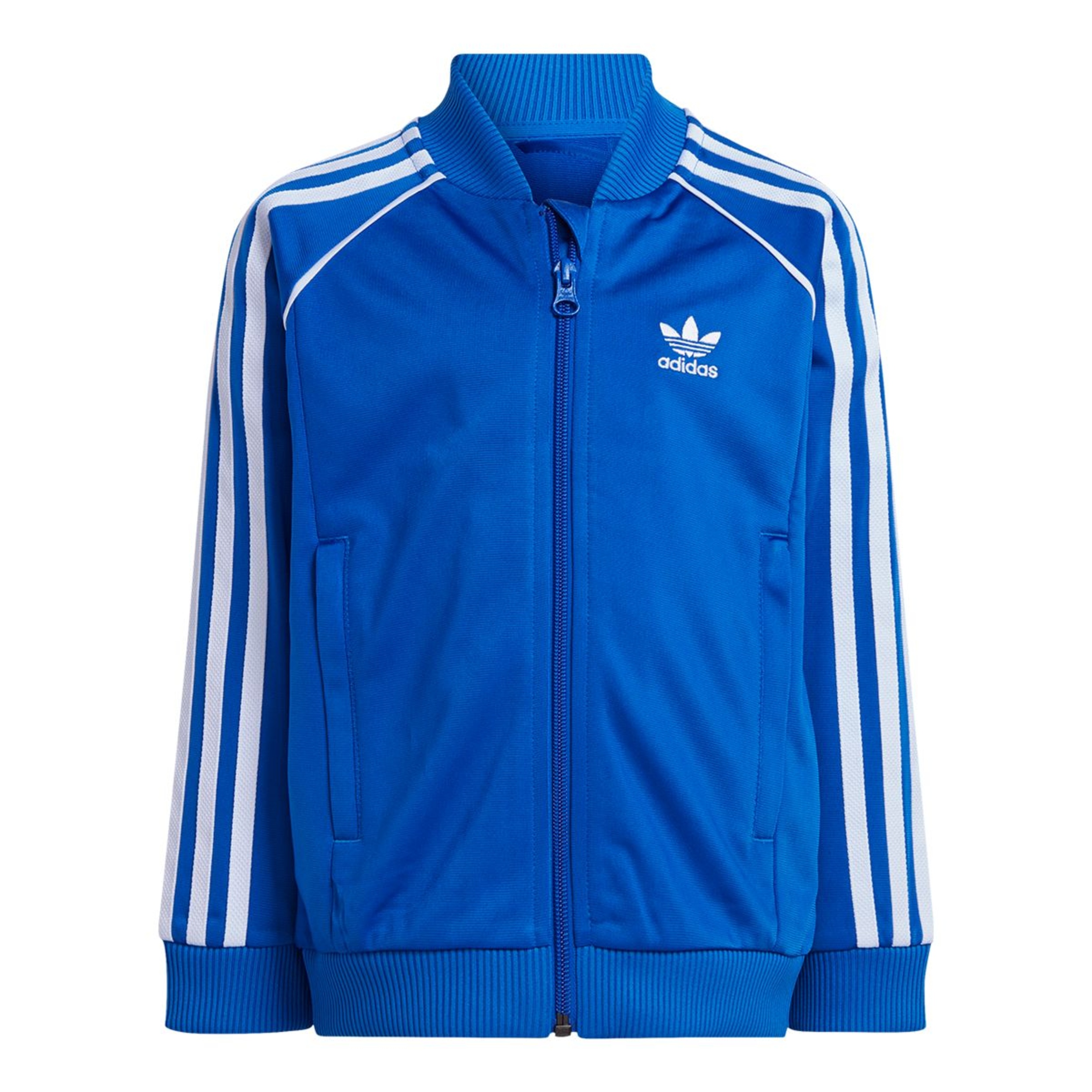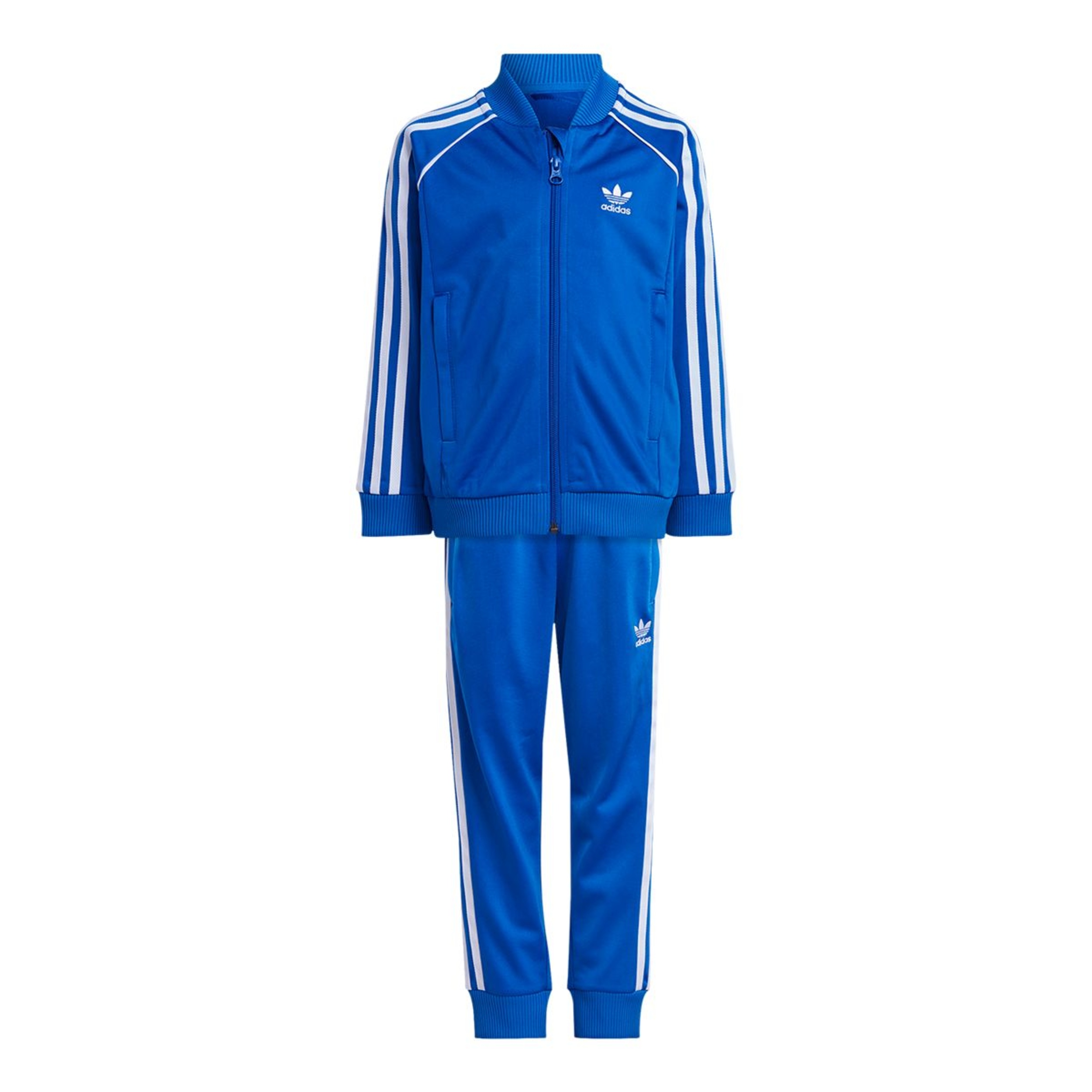 This adidas Toddler Kids' Originals Track Set reimagines a wardrobe staple for a new generation. The embroidered Trefoil and 3-Stripes down the sleeves and legs connect them to decades of athletes and game changers. In smooth tricot teams up with a loose, everyday fit, this look is poised to become their go-to for casual hangouts and adventures. Made with 100% recycled materials, adidas helps to reduce waste and its reliance on finite resources.