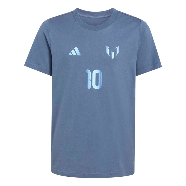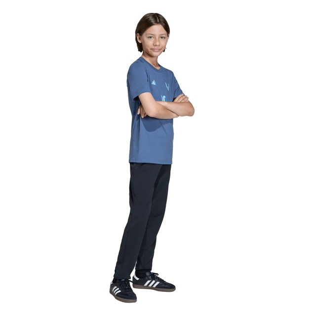 The Messi Name & Number Graphic T-Shirt is a tribute to the football legend, designed for young fans who dream big. Featuring his name and number, this shirt captures the essence of Messi's iconic style, inspired by his jerseys. Adorned with the Messi logo, this t-shirt is a statement piece for junior football enthusiasts. Featuring a regular fit, it provides a relaxed yet stylish look, allowing for confident, easy movement. The durable single-jersey construction provides breathability, helping kids feel comfortable during play time or sports practice. Made from pure cotton, it offers a soft and comfortable feel that makes it a great choice for everyday wear. Whether they're on the pitch or cheering from the sidelines, this graphic t-shirt connects them to the spirit of the game. Watch them take on the world with confidence, in adidas.