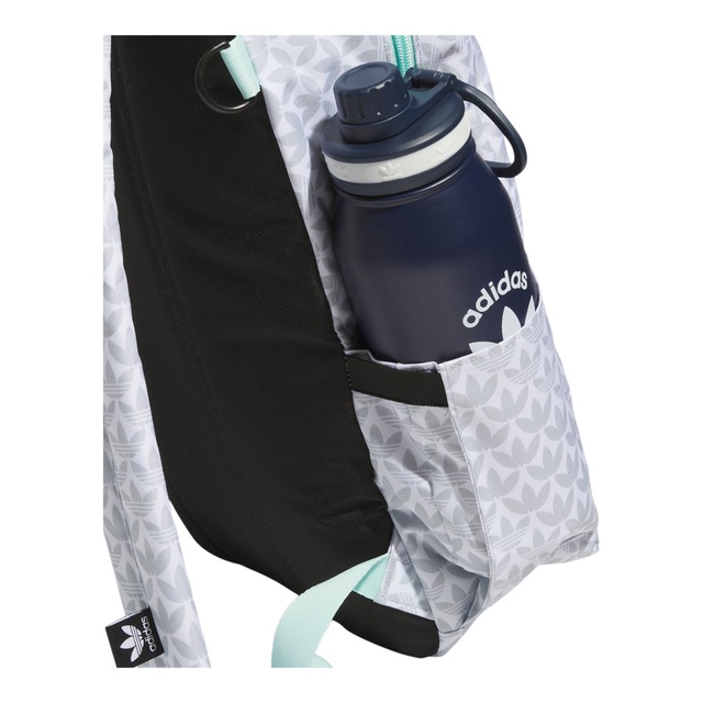 The adidas Unisex Originals Graphic Backpack makes it easy to bring along essentials for school, work or a weekend away. It has a zippered main compartment for secure storage and open side pockets for easy access to smaller items. Made with 100% recycled polyester for sustainability, the surface of this durable adidas backpack can simply be wiped down for easy spot cleaning as needed.