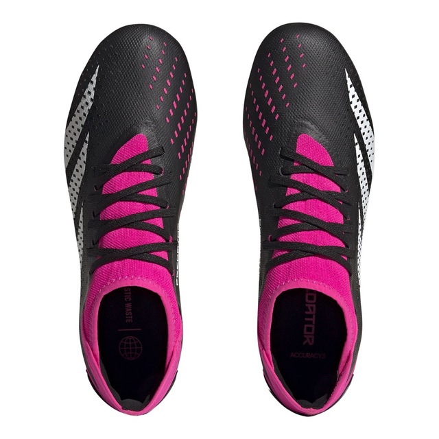 The adidas Kids' Predator Accuracy.3 Firm Ground Outdoor Soccer Cleats provide excellent control and movement on outdoor fields. Featuring a PRIMEKNIT Collar, these soccer cleats keep your child stable at high speeds to transfer power for the perfect strike. The High Definition Texture on its strike zone give players ultimate control over the ball. Made with a series of recycled materials, these soccer cleats feature at least 50% recycled content for sustainability.